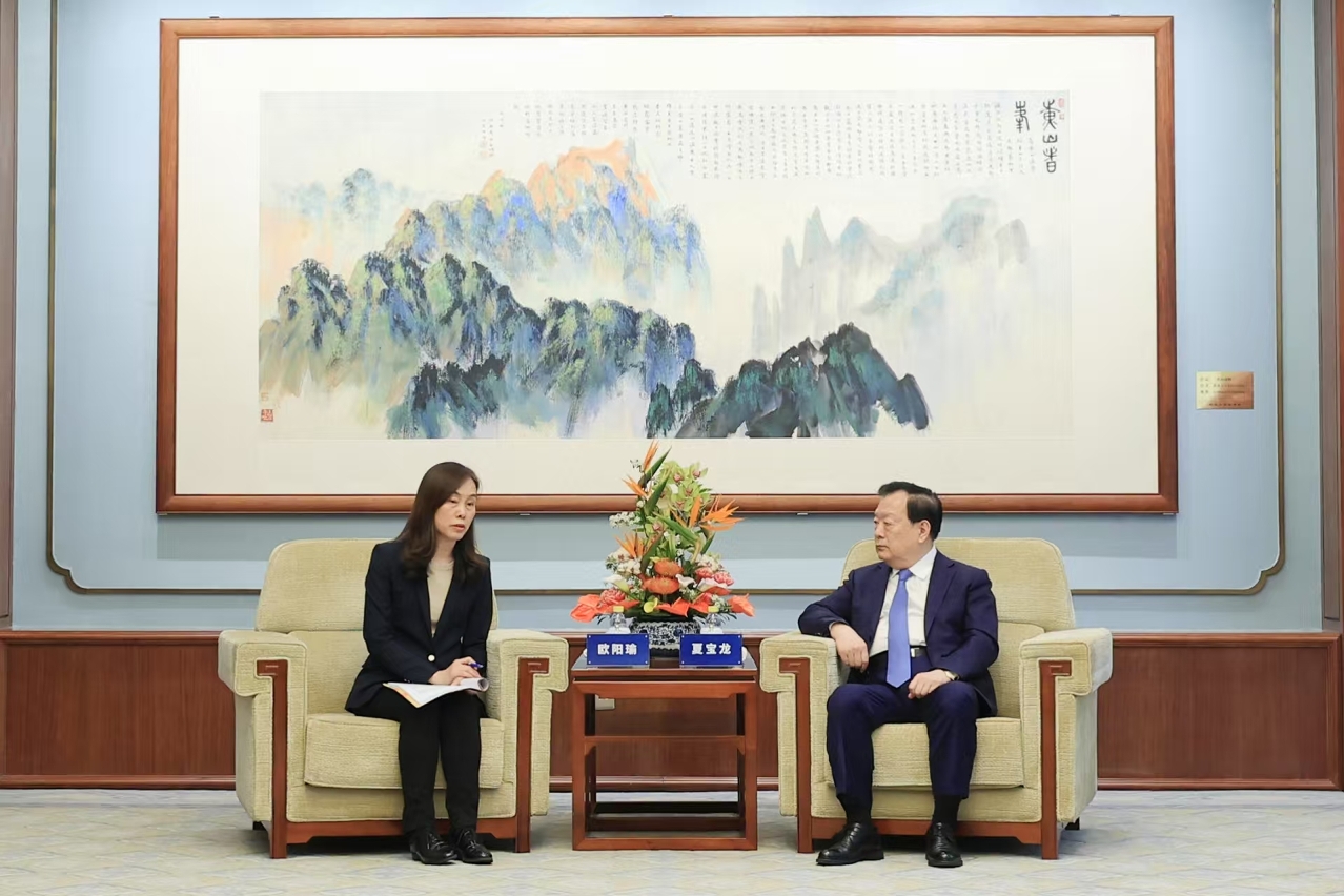 Xia Baolong, Director do Gabinete de Trabalho de Hong Kong e Macau do Comité Central do PCC e do Gabinete dos Assuntos de Hong Kong e Macau junto do Conselho de Estado, reuniu-se com a Comissária da Auditoria, Ao Ieong U, e a sua delegação, em Pequim, na tarde de 22 de Abril, onde também esteve presente o subdirector do Gabinete de Trabalho de Hong Kong e Macau do Comité Central do PCC e do Gabinete dos Assuntos de Hong Kong e Macau junto do Conselho de Estado, responsável pelos trabalhos diários, Zhou Ji.