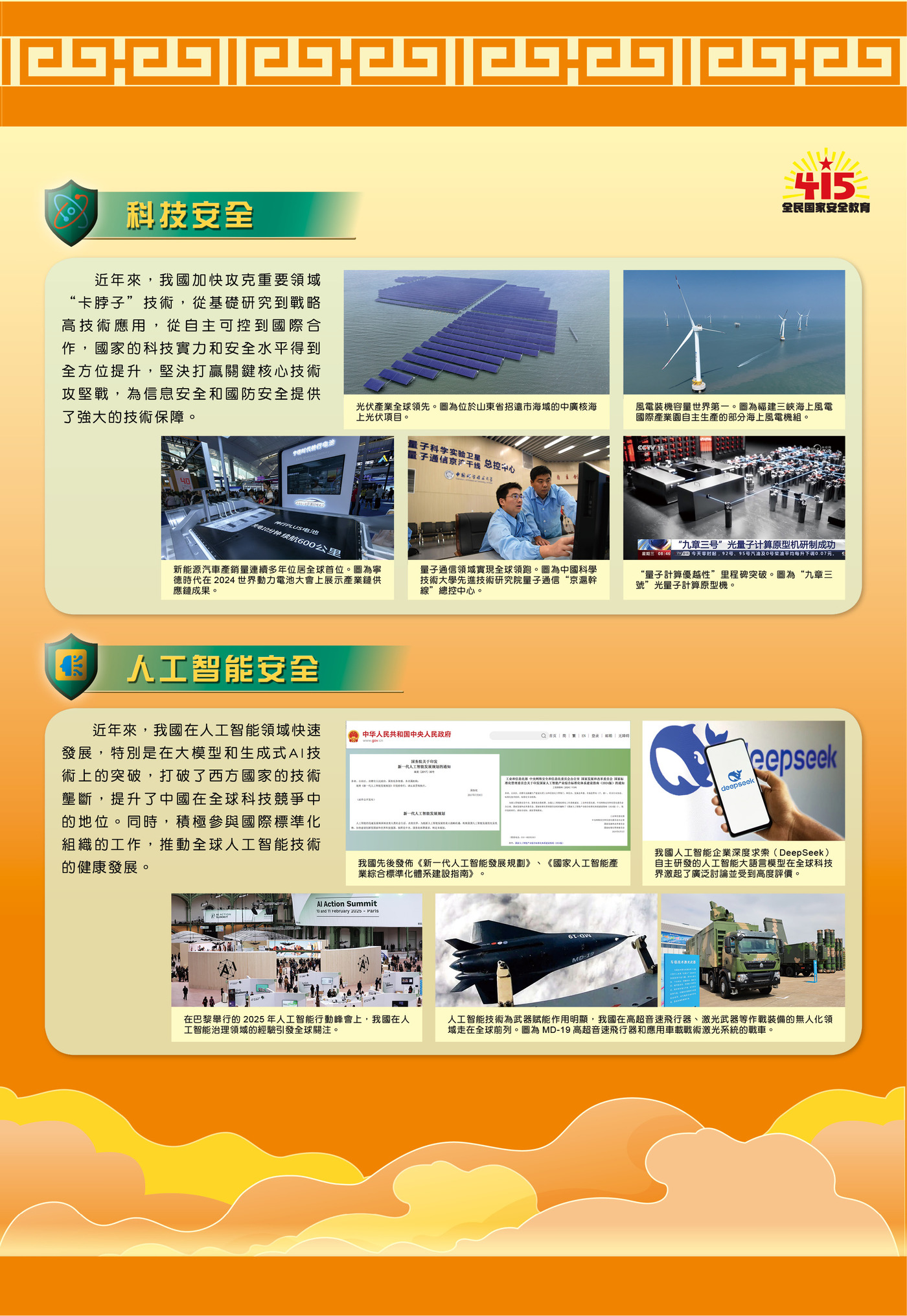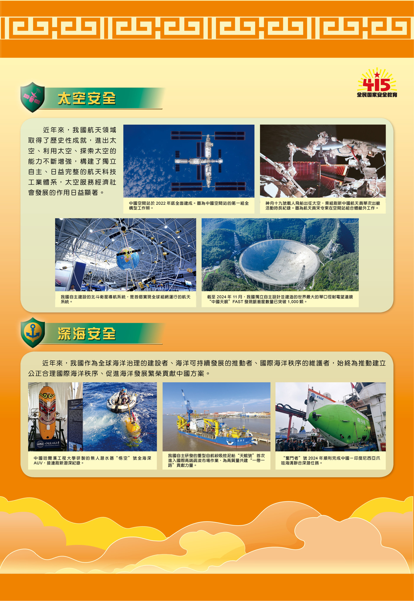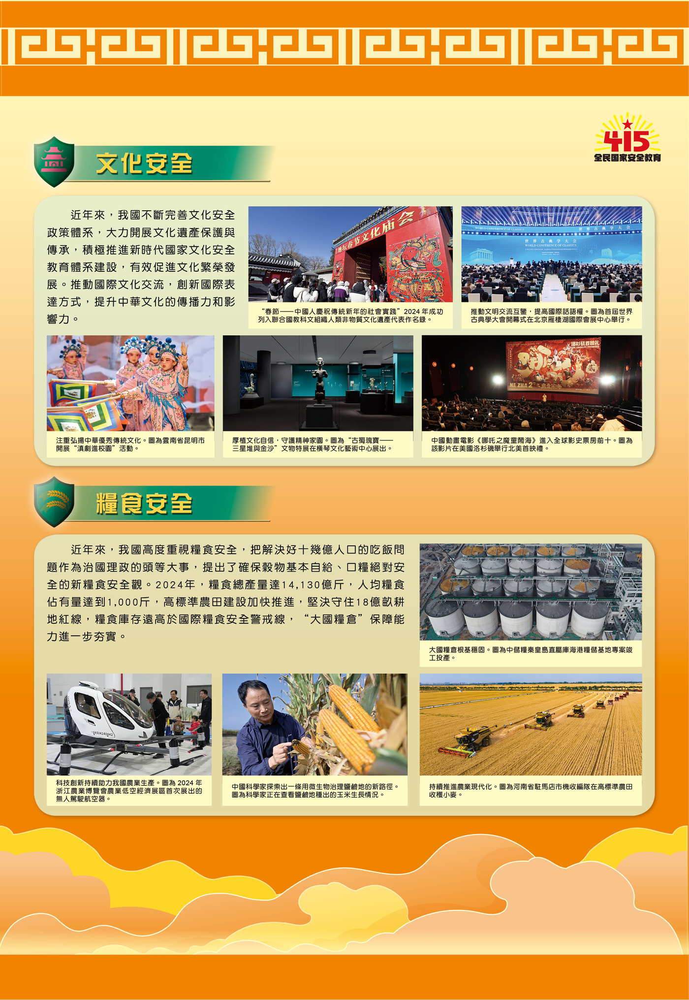 A perspectiva geral da segurança nacional abrange 20 domínios-chave estreitamente interligados, incluindo a segurança política, a segurança militar, a segurança territorial, a segurança económica, a segurança financeira, a segurança científica e tecnológica, a segurança da inteligência artificial, a cibersegurança, a segurança de dados, a segurança da sociedade, a segurança cultural, a segurança alimentar, a segurança ecológica, a segurança biológica, a segurança de recursos, a segurança nuclear, a segurança espacial, a segurança em águas profundas, a segurança polar e a segurança dos interesses no exterior. A segunda parte da exposição mostra os resultados significativos alcançados pela nação na salvaguarda da segurança dos referidos domínios.