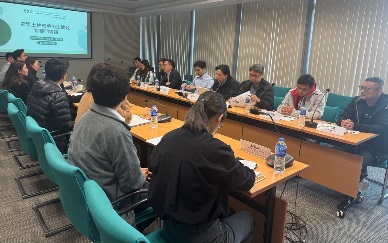 Para desenvolver ainda mais o efeito sinérgico da cooperação interdepartamental na gestão da higiene dos terrenos desaproveitados e optimizar o mecanismo de tratamento dos problemas de proliferação de mosquitos e de higiene ambiental nos terrenos desaproveitados, os Serviços de Saúde (SS), o Instituto para os Assuntos Municipais (IAM) e a Direcção dos Serviços de Solos e Construção Urbana (DSSCU) realizaram recentemente uma “reunião interdepartamental sobre os problemas de higiene ambiental dos terrenos desaproveitados”. A coordenadora do Centro de Prevenção e Controlo da Doença dos Serviços de Saúde, Leong Iek Hou; o chefe do Departamento de Higiene Ambiental e Licenciamento do Instituto para os Assuntos Municipais, Fong Vai Seng; o chefe do Departamento de Urbanização da Direcção dos Serviços de Solos e Construção Urbana, Lau Koc Kun; o chefe do Departamento de Gestão de Solos da Direcção dos Serviços de Solos e Construção Urbana, Lok Ka Chon; e autoridade sanitária dos Serviços de Saúde participaram nesta reunião interdepartamental.