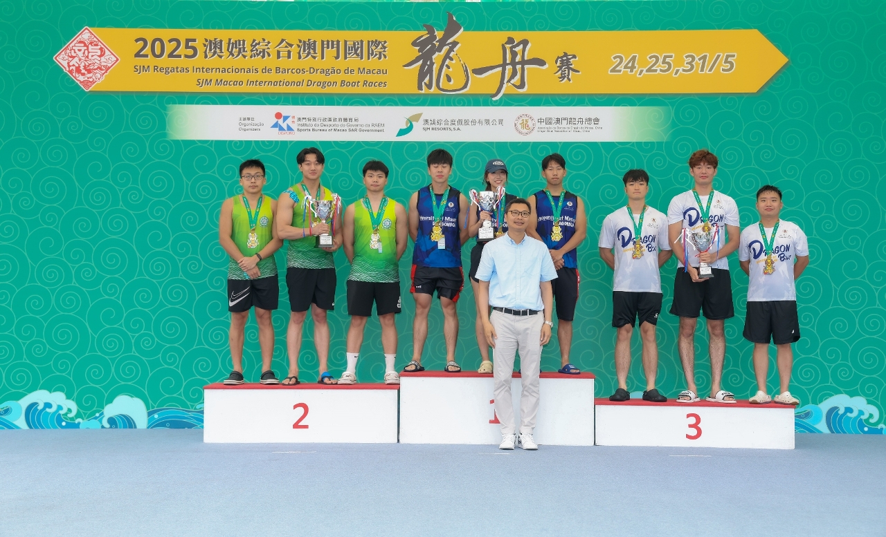 Organizada pelo Instituto do Desporto, pela SJM Resorts, S.A. (SJM) e pela Associação de Barcos-Dragão de Macau, China, e co-organizadas pelo Instituto para os Assuntos Municipais e pela Direcção dos Serviços de Administração e Função Pública, a “SJM Regatas Internacionais de Barcos-Dragão de Macau 2025” decorreu hoje (24) no Centro Náutico da Praia Grande. Após várias rondas de competição, a equipa do Corpo de Bombeiros volta a sagrar-se campeã da Categoria Aberta (200 metros) da Regata de Barcos-Dragão para Pequenas Embarcações, enquanto a equipa da Association of Macao Youth Development - A conquista o título de campeão na Categoria Feminina. Amanhã (dia 25), terão lugar as provas dos Barcos-Dragão Padrão (500 metros), nas Categorias Aberta, Feminina e Mista.