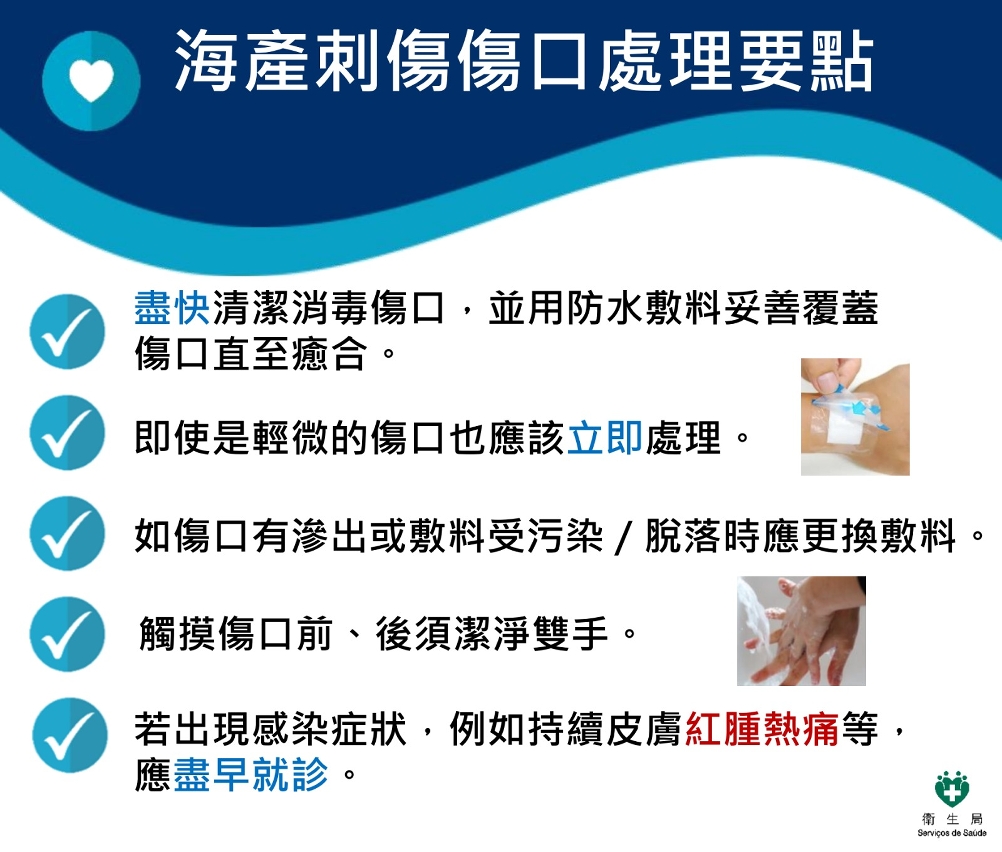 O caso foi detectado numa residente de Macau, mulher de 75 anos de idade, com antecedentes de doenças crónicas. Na tarde de 24 de Maio, picou acidentalmente os dedos da mão direita nas espinhas de um peixe, enquanto o manuseava em casa. Na madrugada do dia 25, apresentou sintomas como febre, dor e inchaço no local da punção, recorreu ao Centro Hospitalar Conde de São Januário para tratamento médico, tendo-lhe sido diagnosticada fasceíte necrotizante nos dedos da mão direita. Necessitou de ficar internada para ser submetida a um desbridamento e ao tratamento com antibióticos. Após análise laboratorial, foi confirmada a existência de Vibrio Vulnificus nas secreções da ferida. No dia 23 de Junho, devido à necrose dos dedos da mão direita, a doente foi submetida a intervenções cirúrgicas. Actualmente, a doente já está recuperada, já teve alta hospitalar e os membros familiares com quem coabita não manifestaram nenhuns sintomas semelhantes.