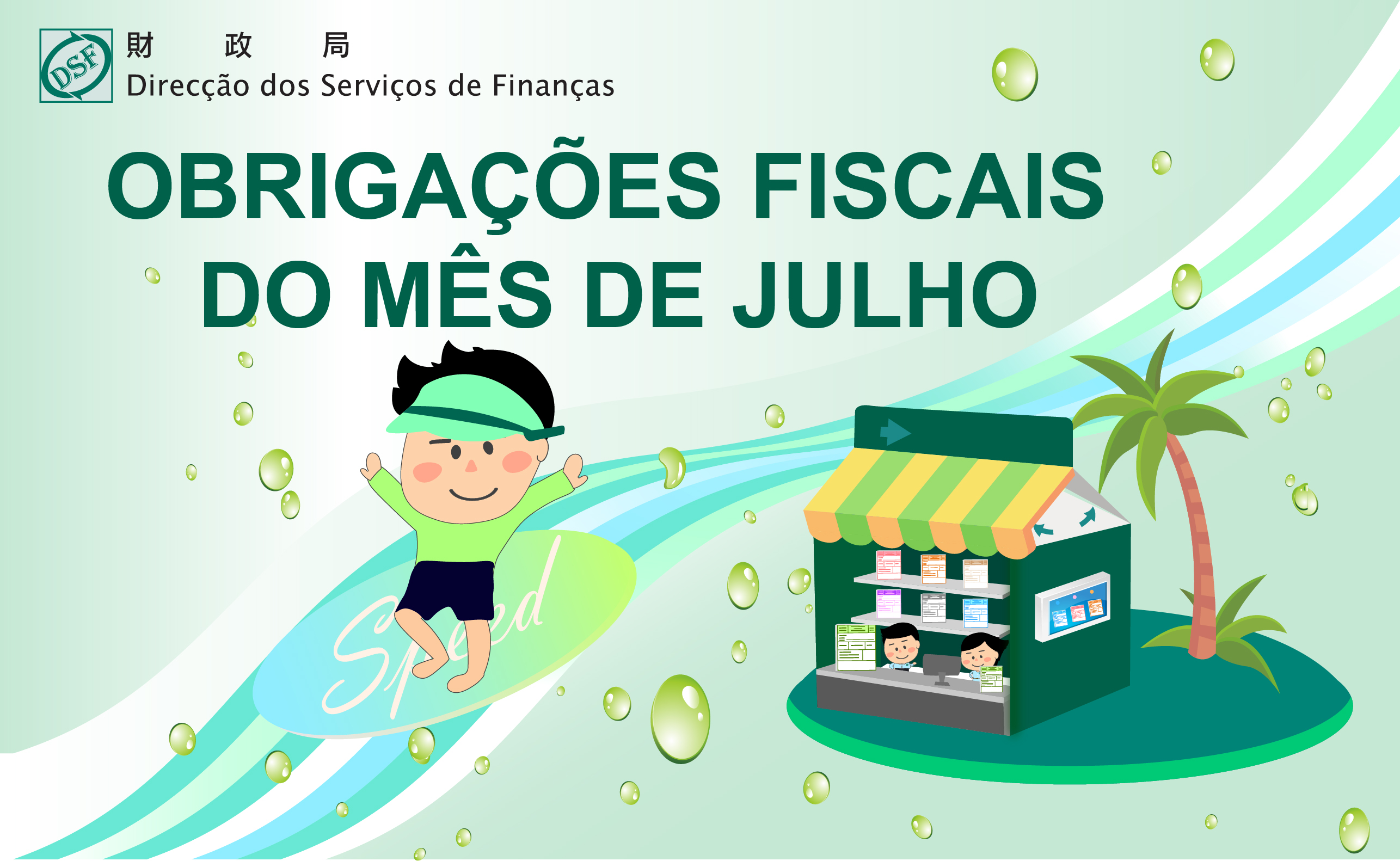 Entrega pelas entidades patronais, nas Recebedorias da DSF, do Edifício Comercial Zhu Kuan Mansion, do Centro de Serviços da RAEM ou do Centro de Serviços da RAEM das Ilhas, das importâncias deduzidas nas remunerações abonadas aos seus assalariados ou empregados, efectuadas no trimestre imediatamente anterior (durante os meses de Abril, Maio e Junho), mediante a Guia modelo M/B. (n.os 4 e 6 do art.º 32.º, da Lei n.º 2/78/M, de 25 de Fevereiro, republicada integralmente pelo Despacho do Chefe do Executivo n.º 267/2003, de 01 de Dezembro de 2003) |