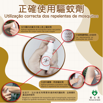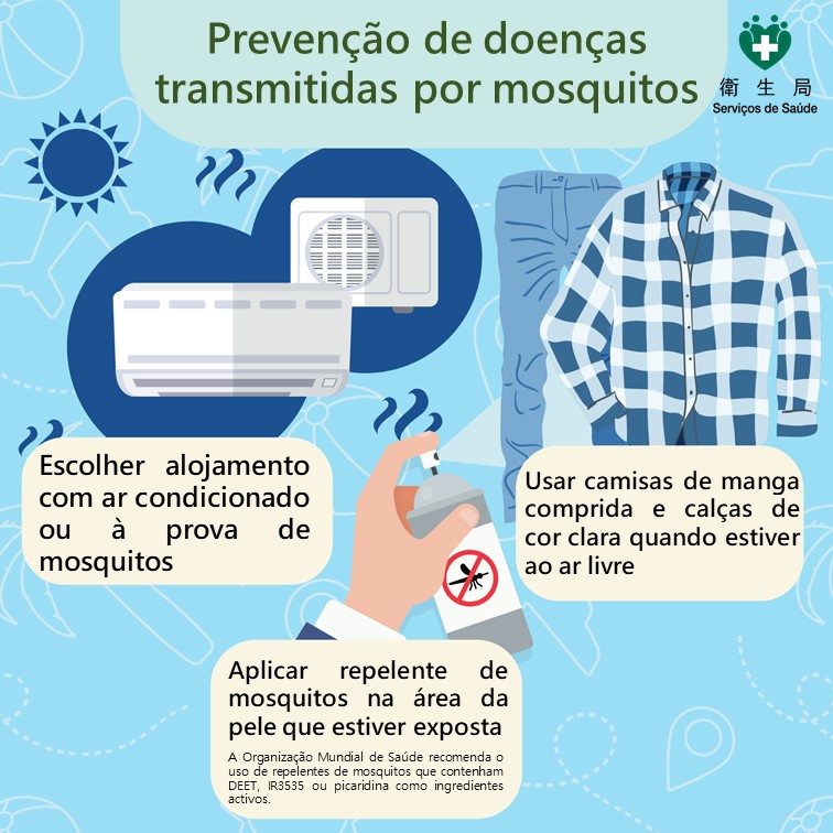Os Serviços de Saúde continuam a acompanhar de perto a situação epidemiológica da febre chikungunya na região vizinha, alertando os residentes para não baixarem a guarda. Caso necessitem de se deslocar às regiões do Sudeste Asiático ou às regiões afectadas pela doença, devem reforçar a prevenção e tomar as “três medidas anti-mosquito” para prevenir em conjunto as doenças transmitidas por mosquitos, tais como, febre chikungunya e febre de dengue: