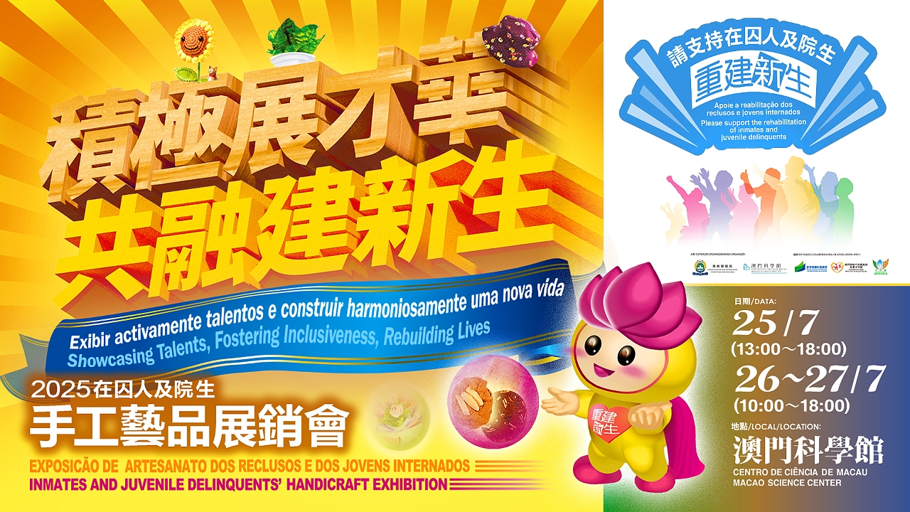 A “Exposição de Artesanato dos Reclusos e Jovens Internados 2025” terá lugar no Salão de Convenções do Centro de Ciência de Macau, entre a tarde de 25 de Julho e 27 de Julho. Através da exibição dos frutos de aprendizagem dos reclusos e jovens internados, o evento visa permitir que o público sinta a determinação dos mesmos na correcção, bem como apoie e aceite a sua reintegração social.