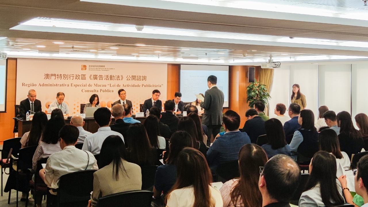 A Direcção dos Serviços de Economia e Desenvolvimento Tecnológico (DSEDT) realizou sessão de consulta destinada às associações comerciais e empresas (dia 24 de Julho), e a última sessão de consulta destinada ao público (dia 26 de Julho), ambas sobre a revisão da “Lei de Actividade Publicitária”, para auscultar as opiniões das associações comerciais, empresas e público sobre a revisão da lei.