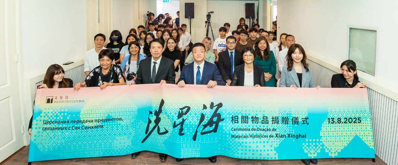 A “Cerimónia de Doação de Materiais Históricos de Xian Xinghai” teve lugar hoje (13 de Agosto) no Museu Memorial de Xian Xinghai, em Macau. Baldyrgan Baikadamova, filha do músico cazaque Bakhytzhan Baikadamov, doou materiais históricos de Xian Xinghai deixados no Cazaquistão, incluindo documentos, partituras e fotografias. O Presidente, Substituto, do Instituto Cultural, Choi Kin Long, agradeceu a generosa doação de Baldyrgan Baikadamova, e salientou que este ano marca o 80.º Aniversário da Vitória na Guerra de Resistência do Povo Chinês contra a Agressão Japonesa e na Guerra Mundial Antifascista e o 120.º Aniversário do Nascimento de Xian Xinghai, tornando esta doação ainda mais significativa. Os materiais relevantes são uma testemunha da amizade que transcendeu o tempo e o espaço entre a China e o Cazaquistão, enriquecendo o acervo do Museu Memorial de Xian Xinghai e os recursos da educação patriótica de Macau. O Conselheiro e Director do Departamento de Informação e Diplomacia Pública do Gabinete do Comissariado do Ministério dos Negócios Estrangeiros da República Popular da China na RAEM, Gao Yuan, a Subdirectora, Substituta, da Direcção dos Serviços de Educação e de Desenvolvimento da Juventude, Cheong Man Fai, a Directora do Museu de Macau do Instituto Cultural, Lou Ho Ian, e a família de Baldyrgan Baikadamova estiveram presentes para testemunhar o evento.