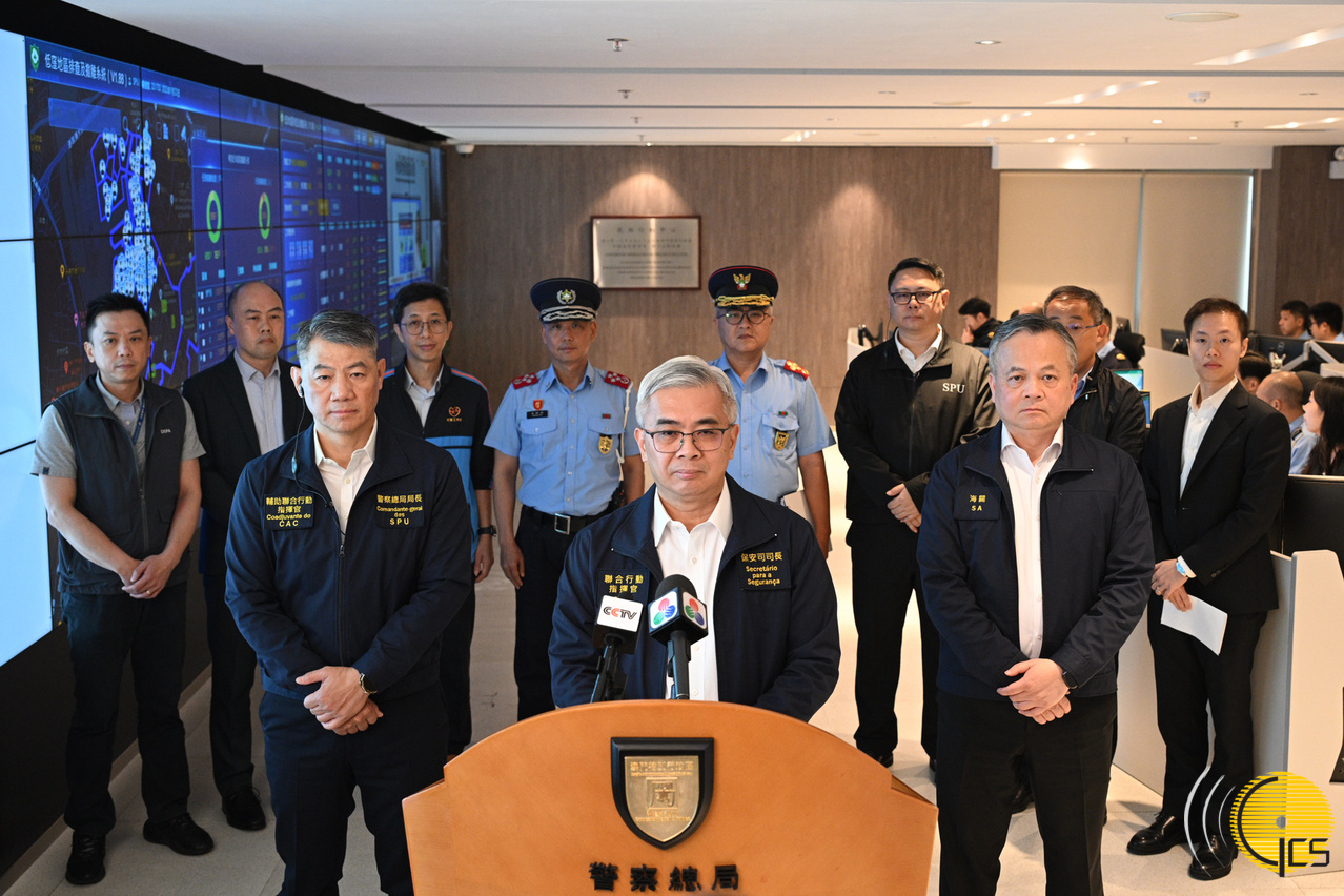 O secretário para a Segurança e comandante da acção conjunta, Wong Sio Chak, no final da tarde de hoje (23 de Setembro), fez uma apresentação à comunicação social sobre a situação mais actualizada do trabalho de resposta ao supertufão “Ragasa”. Frisou que a estrutura de protecção civil dedica-se, totalmente, à execução das medidas de prevenção e resposta, por forma a proteger ao máximo a vida dos residentes e visitantes, e minimizar o impacto que este supertufão tem em Macau.