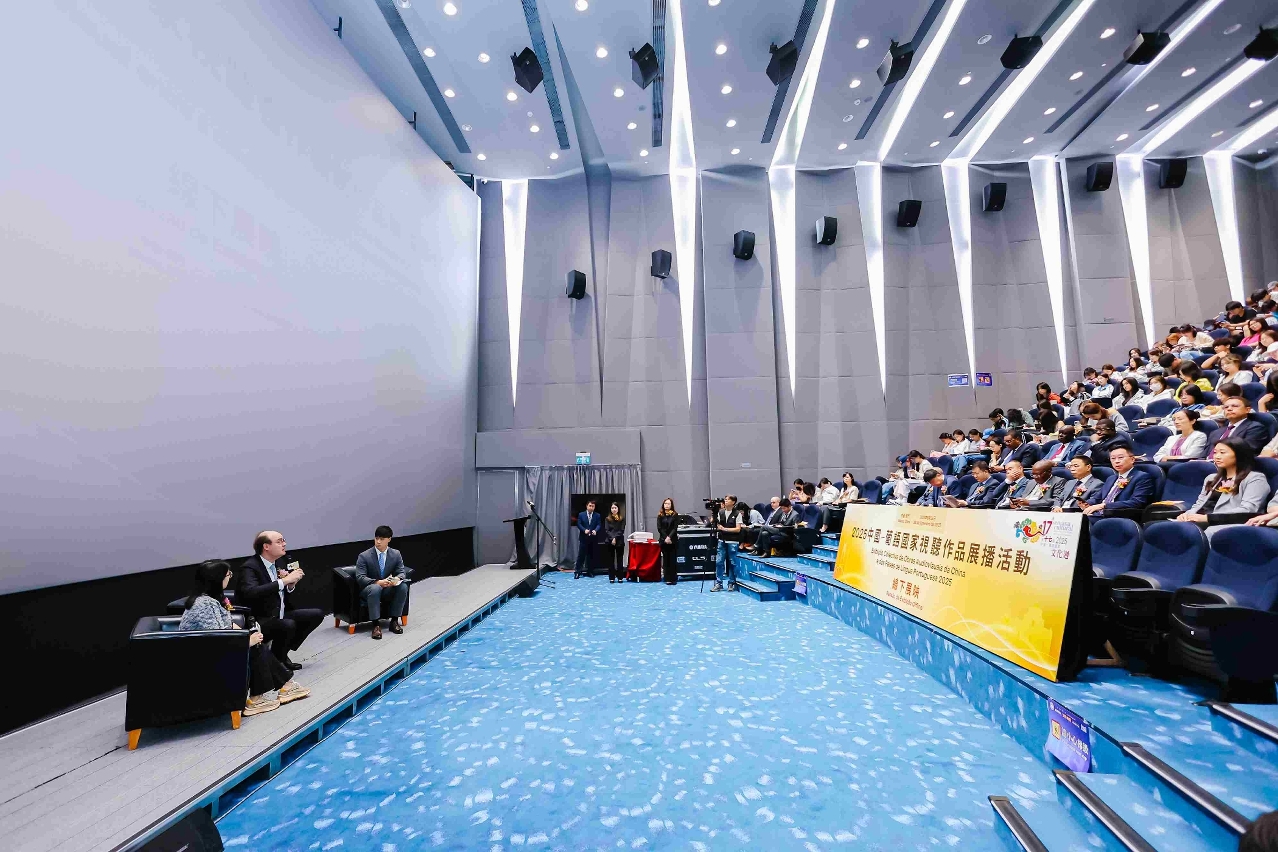 No dia 26 de Setembro, a « Exibição Colectiva de Obras Audiovisuais 2025 no Âmbito do Mecanismo de Cooperação Audiovisual entre a China e os Países de Língua Portuguesa» lançou-se com uma sessão offline, organizada pelo Secretariado Permanente do Fórum de Macau e pelo Departamento de Cooperação Internacional da Administração Nacional de Rádio e Televisão da República Popular da China, em colaboração com a Rádio e Televisão de Guangdong e da Teledifusão de Macau, S.A. A primeira sessão de exibição decorreu no Movie Hall da Universidade de Ciência e Tecnologia de Macau, contando com a presença de mais de 200 convidados, incluindo o Secretário-Geral do Secretariado Permanente, Ji Xianzheng, o Cônsul-Geral da República de Moçambique em Macau, Rodrigues Vitorino Muebe, o Chanceler no Consulado-Geral da República Portuguesa em Macau e Hong Kong, Manuel Ricardo Silva, o Presidente do Conselho Administrativo do Instituto de Promoção do Comércio e do Investimento da RAEM, Che Weng Keong, o Subchefe da Divisão do Departamento da Economia do Gabinete de Ligação do Governo Popular Central na RAEM, Zhang Guanyu, Director da Faculdade de Estudos Internacionais da Universidade de Ciência e Tecnologia de Macau, Prof. Zhang Hongming, a Subdirectora do Centro de Comunicações Externas da Rádio e Televisão de Guangdong, Zheng Yuanjun, o Membro do Comité Executivo da Teledifusão de Macau, S.A., Vong Vai Hung, a Chefe Substituta do Departamento dos Assuntos Culturais e Recreativos e de Educação Cívica do Instituto para os Assuntos Municipais do Governo da RAEM, Pong Sio Wan, a Directora do Centro de Difusão de Línguas da Direcção dos Serviços de Educação e de Desenvolvimento da Juventude do Governo da RAEM, Leong Lai San, o sinólogo David Gosset, a Realizadora-Chefe do documentário Inspiração · Grande Baía, Tang Lina, os membros do Secretariado Permanente do Fórum de Macau, docentes e alunos da Universidade MUST, entre outros.