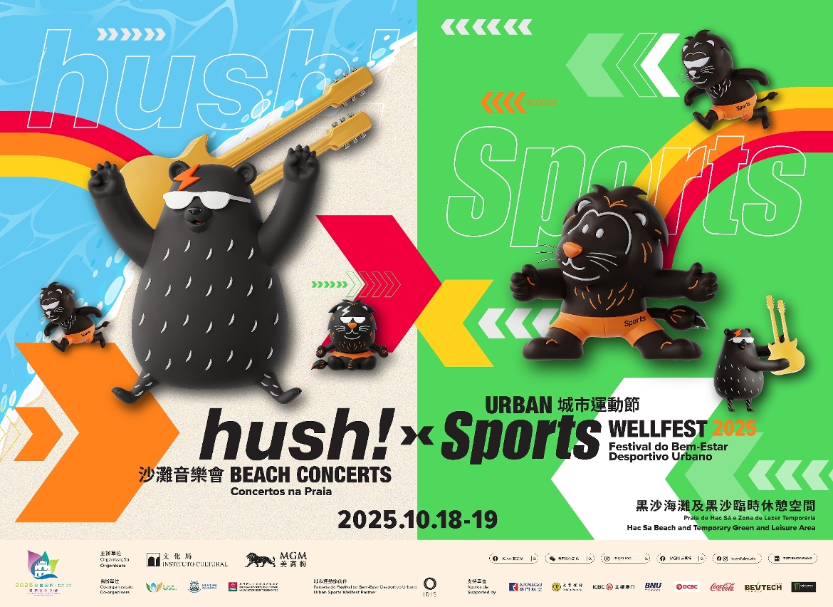 Organizado conjuntamente pelo Instituto Cultural (IC) e pela MGM, em colaboração com o Instituto para os Assuntos Municipais, a Direcção dos Serviços de Assuntos Marítimos e de Água e a Direcção dos Serviços de Turismo, o evento “hush! Concertos na Praia x Festival do Bem-Estar Desportivo Urbano 2025” terá lugar nos dias 18 e 19 de Outubro, na Praia de Hac Sá e na Zona de Lazer Temporária. Até lá, fique já a conhecer, em primeira mão, a primeira ronda de programas, as actividades de Prelúdio Festivo e os destaques do evento interdisciplinar ao ar livre com música e desporto.