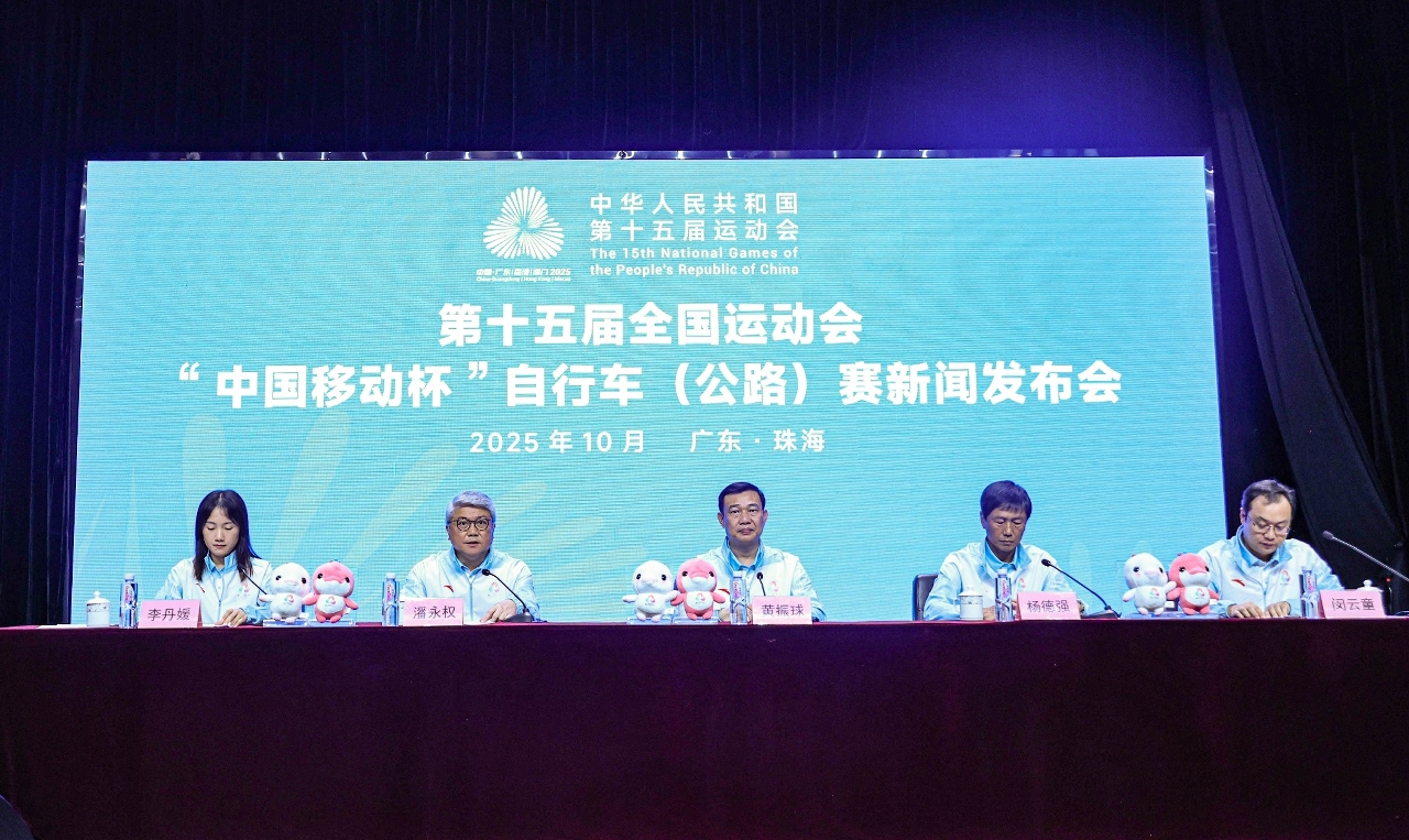 A conferência de imprensa sobre as provas do ciclismo de estrada da 15.ª edição dos Jogos Nacionais teve lugar hoje (dia 13), pelas 15: 00, em Zhuhai. Os representantes das três zonas de competição participaram nesta conferência de imprensa, incluindo o Coordenador-Adjunto da Comissão Executiva da Zona de Competição de Zhuhai e Vice-Presidente do Governo Popular de Zhuhai, Huang Zhenqiu, o Coordenador do Gabinete de Coordenação da Zona de Competição de Hong Kong, Yeung Tak Keung, o Coordenador do Gabinete Preparatório para a Organização da Zona de Competição de Macau, Pun Weng Kun e o Coordenador-Adjunto permanente do Gabinete das Comissões Executivas da Zona de Competição de Guangdong e Director do Departamento de Cultura, Rádio, Televisão, Turismo e Desporto de Zhuhai, Min Yuntong, entre outros.