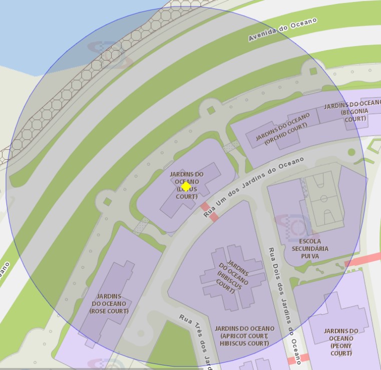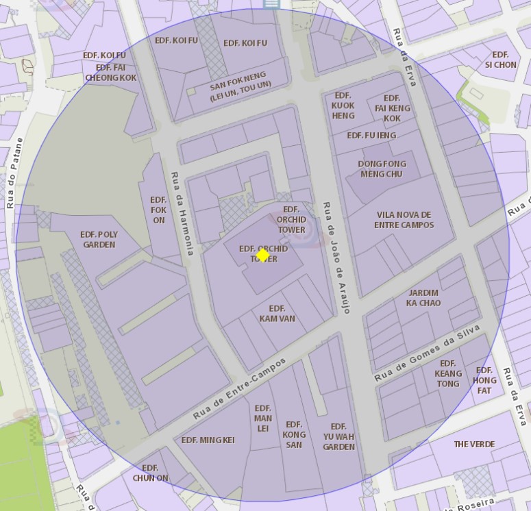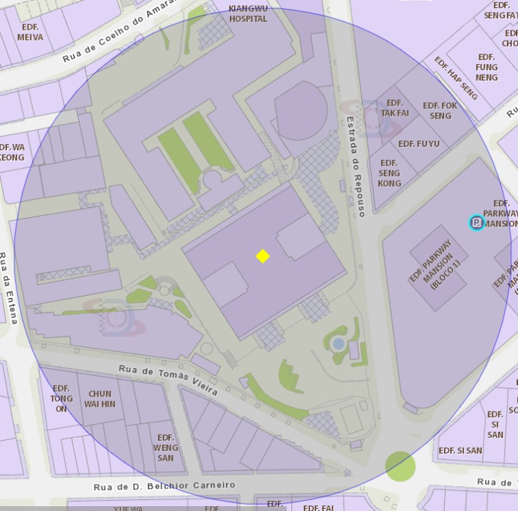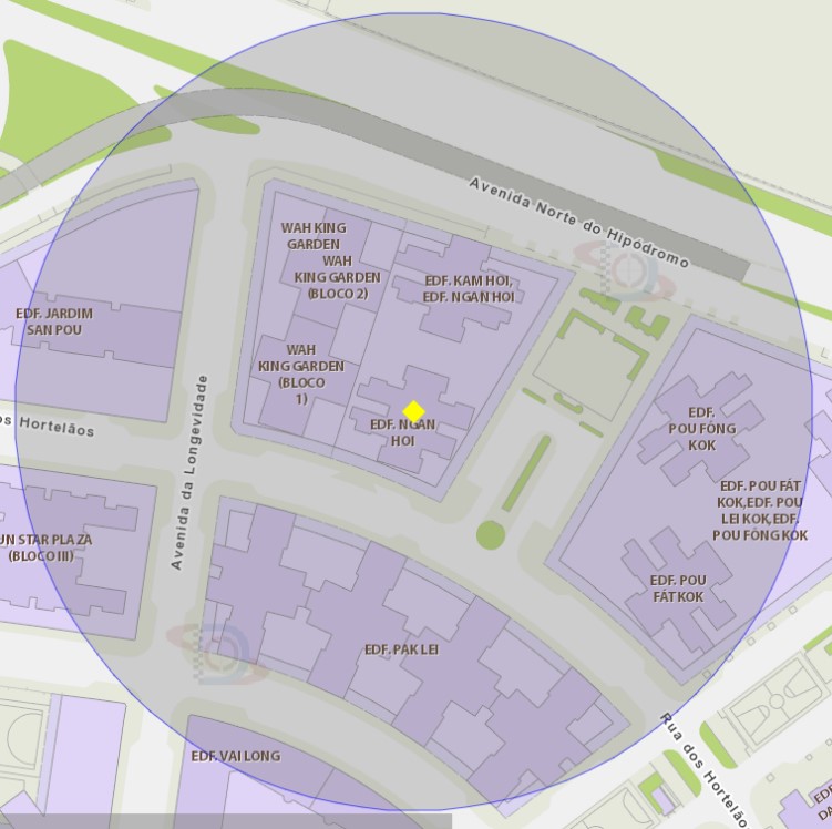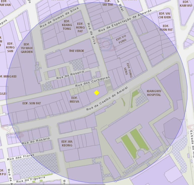 Tendo em conta que a área de acção do mosquito Aedes Albopictus é de cerca de 100 metros em torno do ponto de proliferação, foi definida uma área de risco num raio de 100 metros como alvo da presente acção de eliminação de mosquitos (vide o mapa em anexo). Os Serviços de Saúde, apelam ao público para prestar atenção e tomar medidas preventivas em conjunto, a fim de reforçar a prevenção de doenças transmitidas por mosquitos.