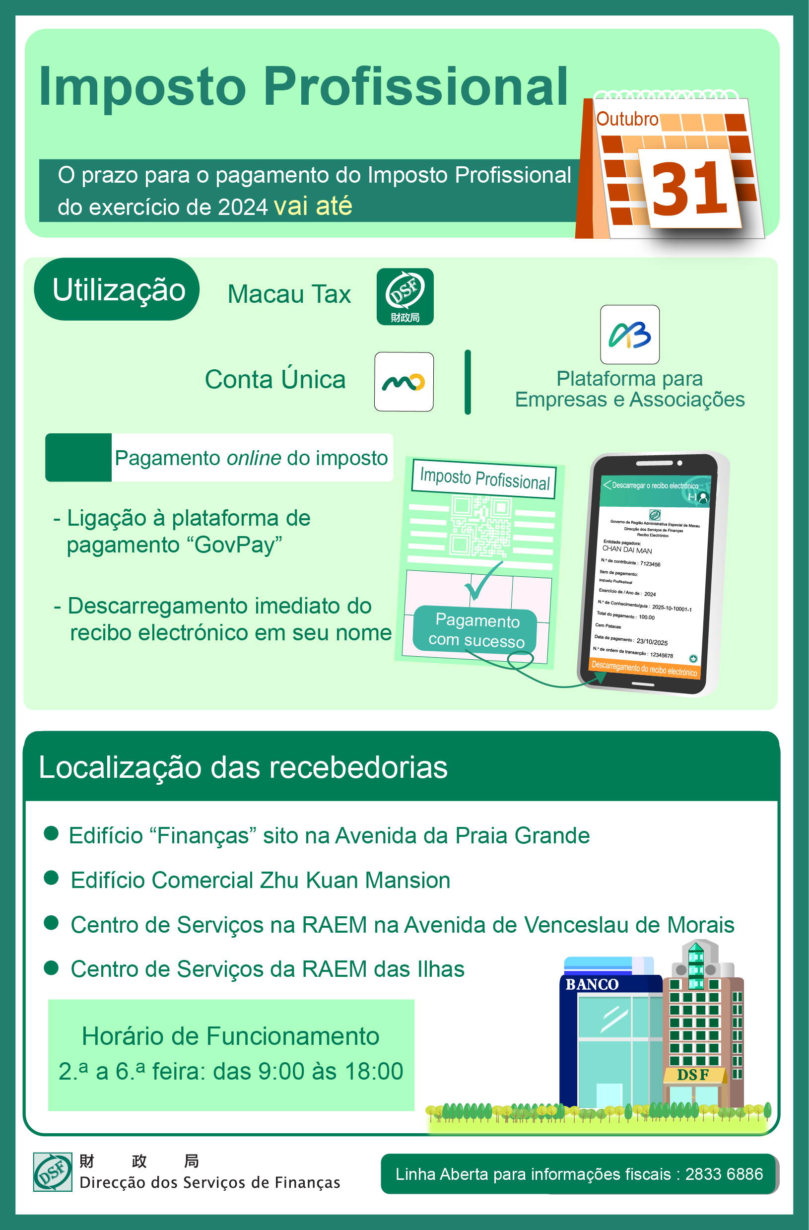 Para quaisquer dúvidas, queira contactar a Linha Aberta para informações fiscais através do n.º 2833 6886.