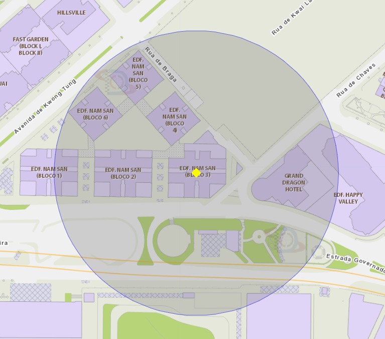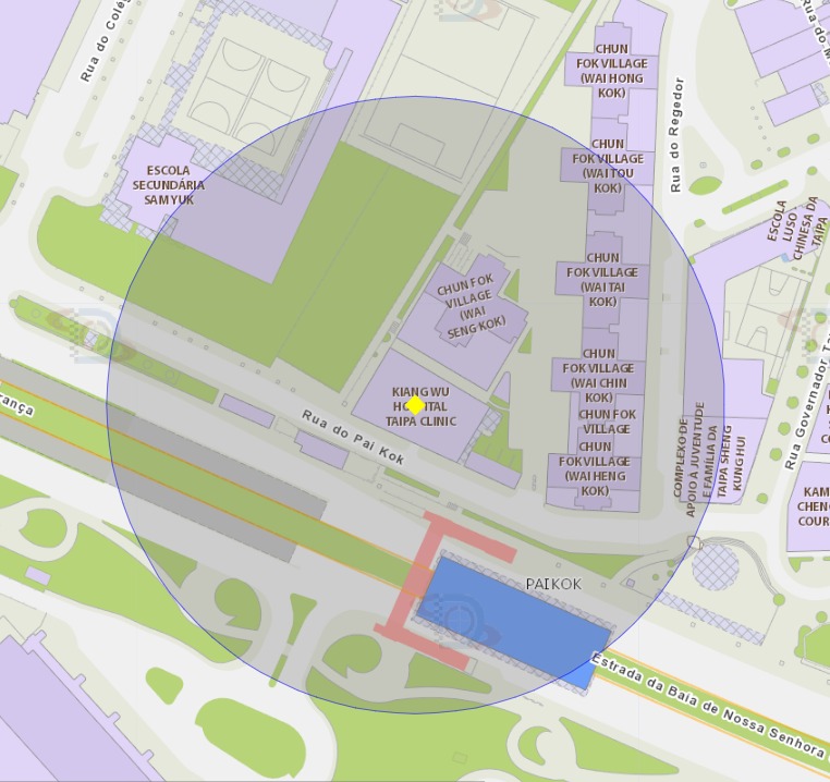 Em resposta à notificação de um (1) caso importado de febre de dengue, no dia 26 de Outubro, os Serviços de Saúde irão proceder, em breve, ao trabalho de eliminação química de mosquitos, nas zonas de risco perto do Edifício Hong Cheong (Bloco 2) da Taipa, do Edifício Nam San (Bloco 3) da Taipa, do Centro Médico de Taipa do Hospital Kiang Wu, e do Hotel Andaz Macau. Tendo em conta que a área de acção do mosquito Aedes é de cerca de 100 metros em torno do local de reprodução, a área de risco com um raio de 100 metros será abrangida por este trabalho de controlo. Por conseguinte, os Serviços de Saúde apelam à população para que esteja atenta e tome medidas preventivas em conjunto, a fim de reforçar a prevenção de doenças transmitidas por mosquitos. Relativamente às áreas envolvidas, podem consultar as fotografias em anexo.