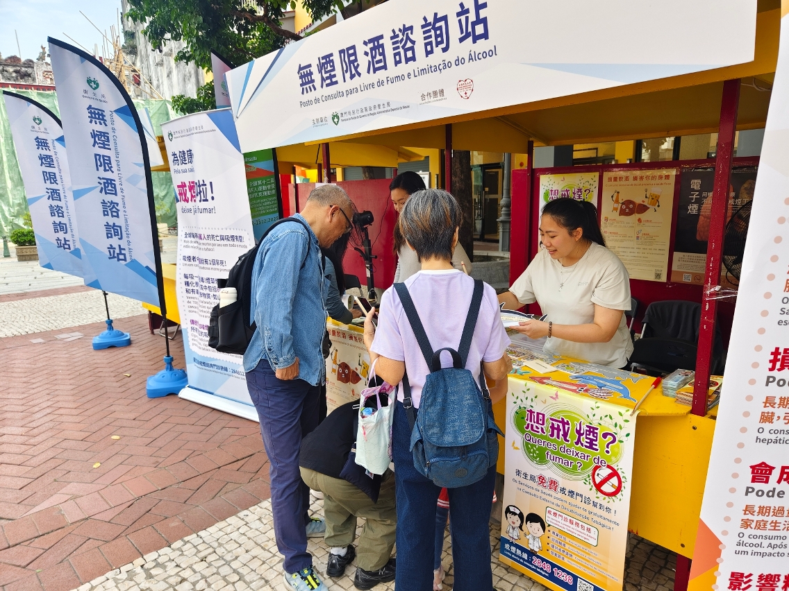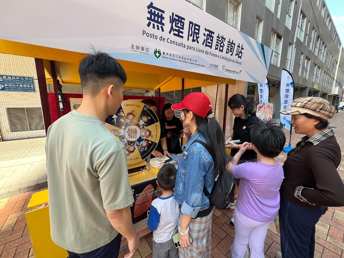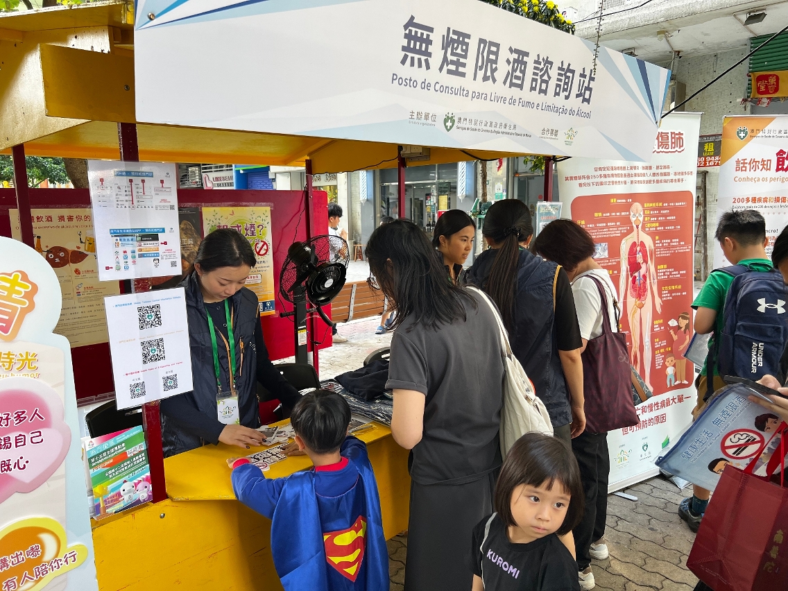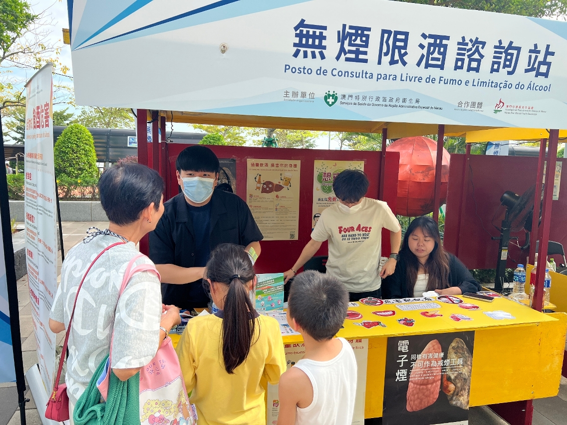 Esta actividade foi realizada simultaneamente em 10 locais de Macau, Taipa e Coloane. Através da instalação de tendas de consulta, jogos interactivos e explicações sobre a saúde, foram apresentados aos residentes os malefícios do consumo de tabaco e de álcool para a saúde, bem como foi feita a divulgação das disposições da Lei de Controlo do Tabagismo e da Lei de Controlo do Consumo de Álcool. No local da actividade, os profissionais de saúde das associações colaboradoras prestaram serviços profissionais de aconselhamento da cessação tabágica e muitos residentes marcaram de imediato uma consulta para cessação tabágica nos Serviços de Saúde através da aplicação móvel “Conta Única de Macau”.