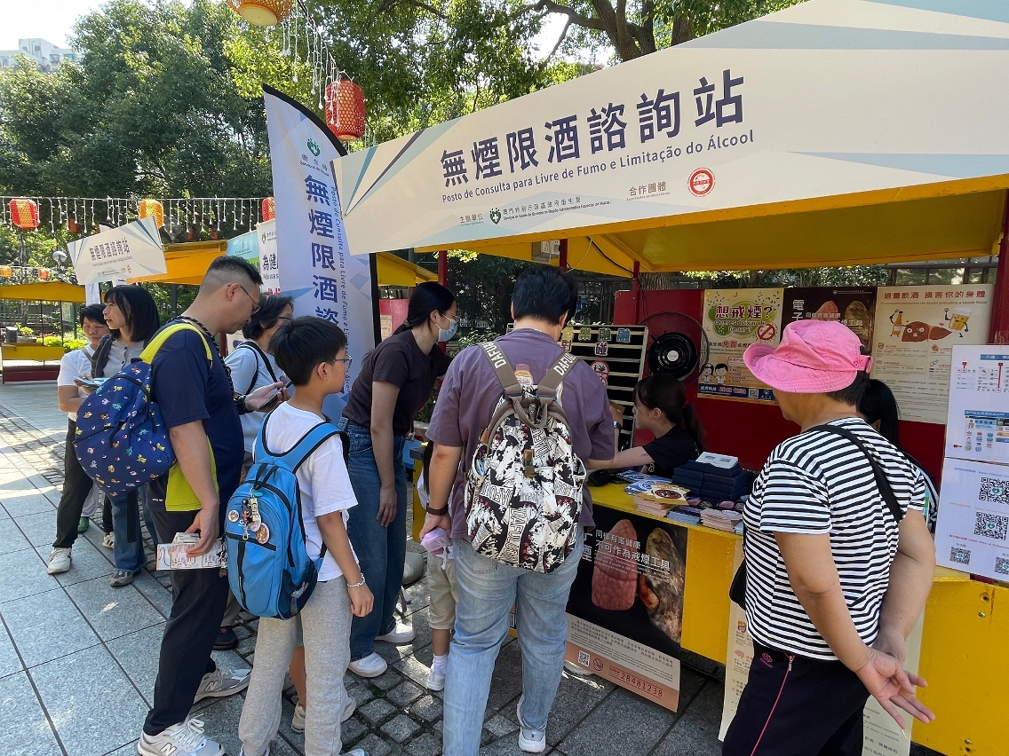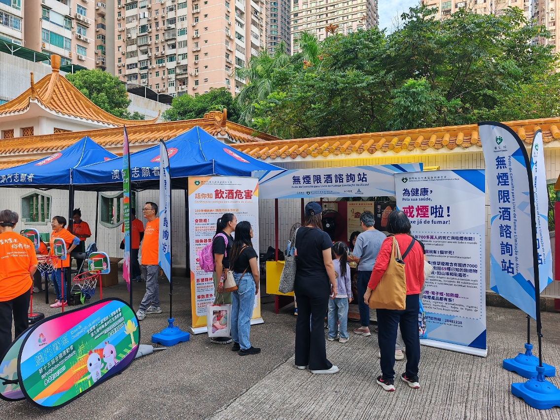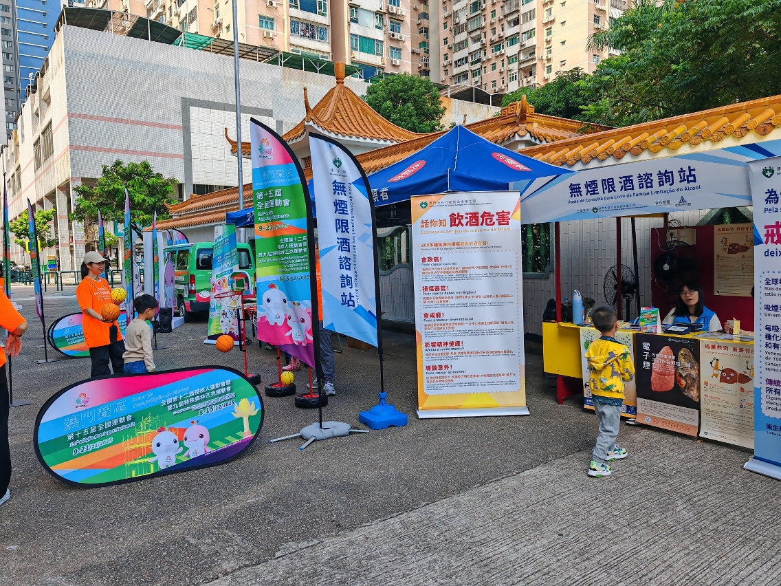 Com o intuito de promover activamente o programa “Comunidade Saudável”, articular amplamente as forças das associações dos diversos sectores, desenvolver as sinergias e concretizar a extensão de recursos para a comunidade, os Serviços de Saúde, em conjunto com oito (8) associações locais, realizaram, nos dias 25 e 26 de Outubro, a actividade intitulada “Posto de Consulta para Livre de Fumo e Limitação do Álcool”. Esta actividade integrou a promoção de saúde e a divulgação da 15.ª edição dos Jogos Nacionais, com uma reacção calorosa, tendo atraído a participação de mais de 6.000 pessoas durante os dois dias, com resultados notáveis.