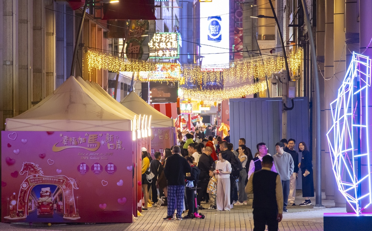 A “Gala a galope no ZAPE” está a ser organizada na zona entre a Rua de Cantão e a Rua de Pequim do Porto Exterior até 1 de Março, aonde foram instaladas instalações para tirar fotografias, cujos temas são o Ano Novo Chinês e o Dia dos Namorados. Por outro lado, realizaram-se espectáculos maravilhosos e jogos interactivos e, ao mesmo tempo, promovem-se promoções conjuntas com as lojas comerciais da zona, para mostrar o encanto das festividades neste bairro comunitário. Por outro lado, a DST também patrocina a realização de actividades comunitárias diversificadas, prolongando o ambiente festivo do Ano Novo Chinês.