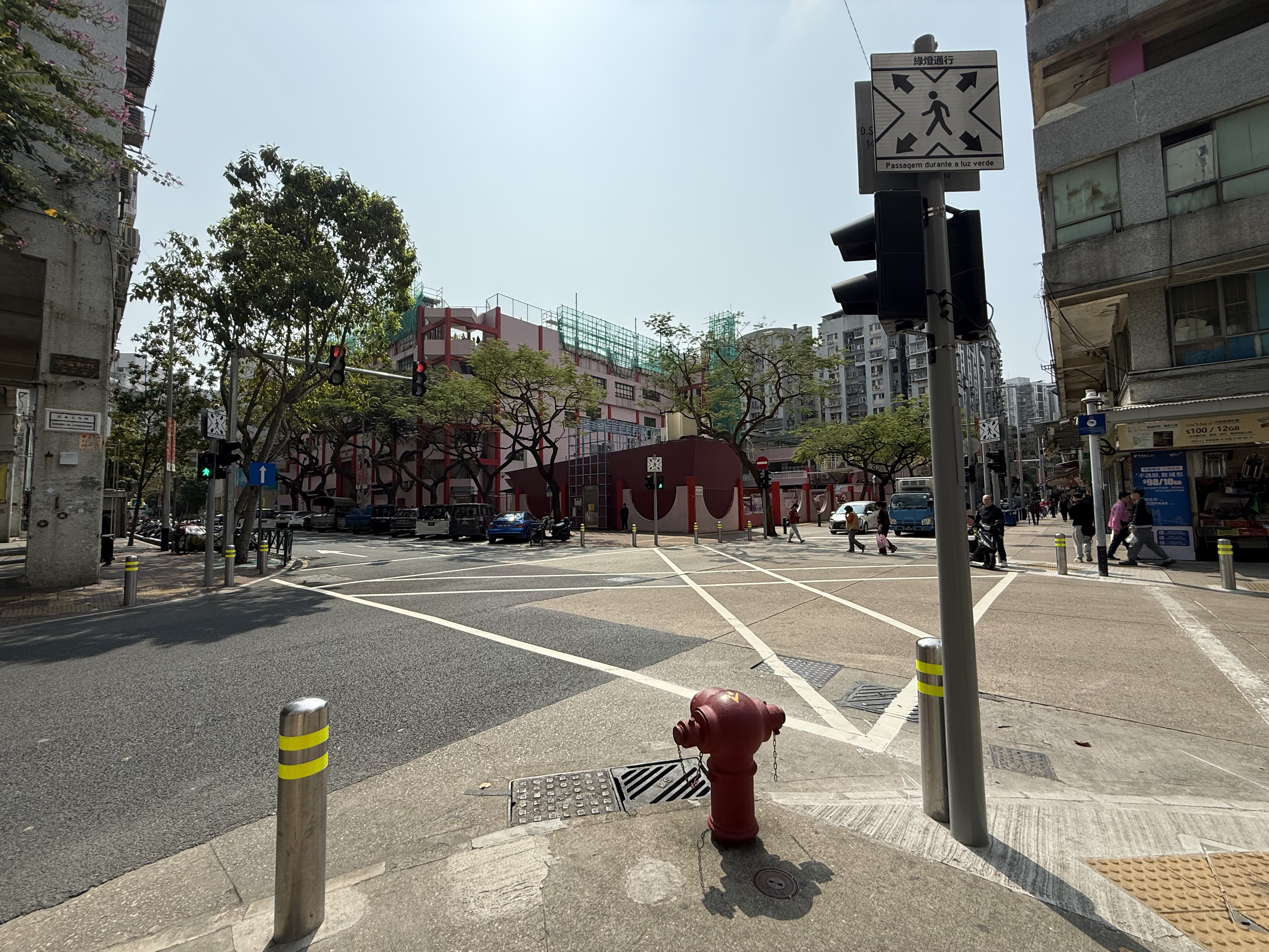 Em resposta à densidade do bairro de Iao Hon, com elevado fluxo de peões e veículos, a Direcção dos Serviços para os Assuntos de Tráfego (DSAT) analisou o ambiente de tráfego da área, com o objectivo de reforçar a segurança rodoviária e melhorar a eficiência da passagem de peões, instalando progressivamente travessias pedonais omnidireccionais na zona. Após apresentação e recolha de opiniões junto do Conselho Consultivo do Trânsito, e após comunicação com as escolas circundantes realizada em colaboração com a Direcção dos Serviços de Educação e de Desenvolvimento da Juventude, as duas intersecções entre a Avenida da Longevidade e a Rua Quatro do Bairro Iao Hon, bem como a Rua Seis do Bairro Iao Hon, nas proximidades do Centro Comercial Vong Kam, passaram a contar com travessias pedonais omnidireccionais a partir da manhã de hoje (dia 7).