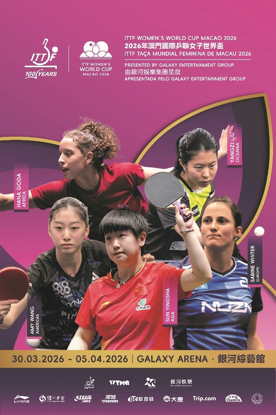 As ITTF Taças Mundiais Masculina e Feminina de Macau de 2026, organizadas pelo ID, pelo Galaxy Entertainment Group e pelo World Table Tennis Management Group Limited, e co-organizadas pela Associação Geral de Ping Pong de Macau, terão lugar na Galaxy Arena, de 30 de Março a 5 de Abril. A competição contará com a participação de 96 atletas de elite. Este torneio integra o prestigiado grupo das três maiores competições mundiais de ténis de mesa, juntamente com os Jogos Olímpicos e os Campeonatos do Mundo.