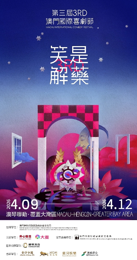 Sob o patrocínio da Secretaria para os Assuntos Sociais e Cultura, organizado pela Mahua FunAge e pela Damai, e co-organizado pelo IC, o 3.º Festival Internacional de Comédia de Macau terá lugar simultaneamente em Macau e em Hengqin, de 9 a 12 de Abril. O Festival apresentará uma gama diversificada de espectáculos de artes performativas, destacando o espectáculo “Parque da Alegria”, no Anim’Arte NAM VAN, inspirado em figuras históricas de Macau. Paralelamente, em Hengqin, personalidades do sector integrarão o júri para seleccionar novos talentos para o curso de formação prática de comédia de Macau.