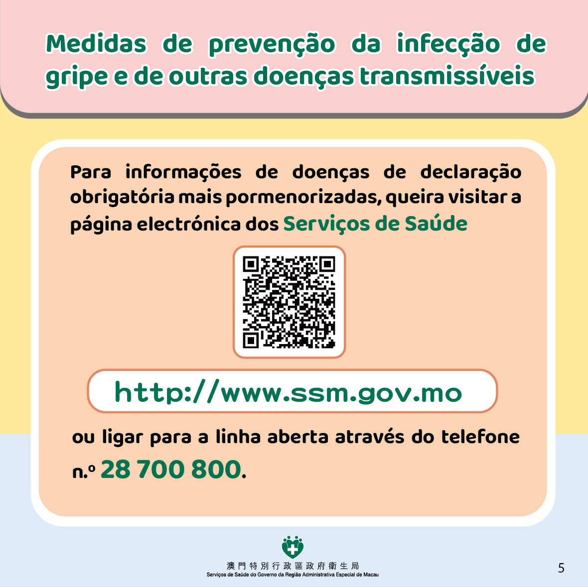 Para reduzir o risco de contrair a gripe e outras doenças transmissíveis, os Serviços de Saúde apelam que os residentes consultem as seguintes infografias para reforçar as medidas de protecção individual.