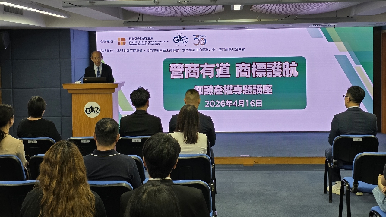 Para reforçar a consciência das empresas sobre a proteção de marcas no âmbito da gestão quotidiana, a DSEDT organizou recentemente, em colaboração com o Centro de Produtividade e Transferência de Tecnologia de Macau, uma palestra jurídica sobre propriedade intelectual com o tema “Fazer um bom negócio: protecção de marcas”, que atraiu a participação de cerca de 50 representantes das PME, incluindo as “Lojas com Características Especializadas e Delicadas”.