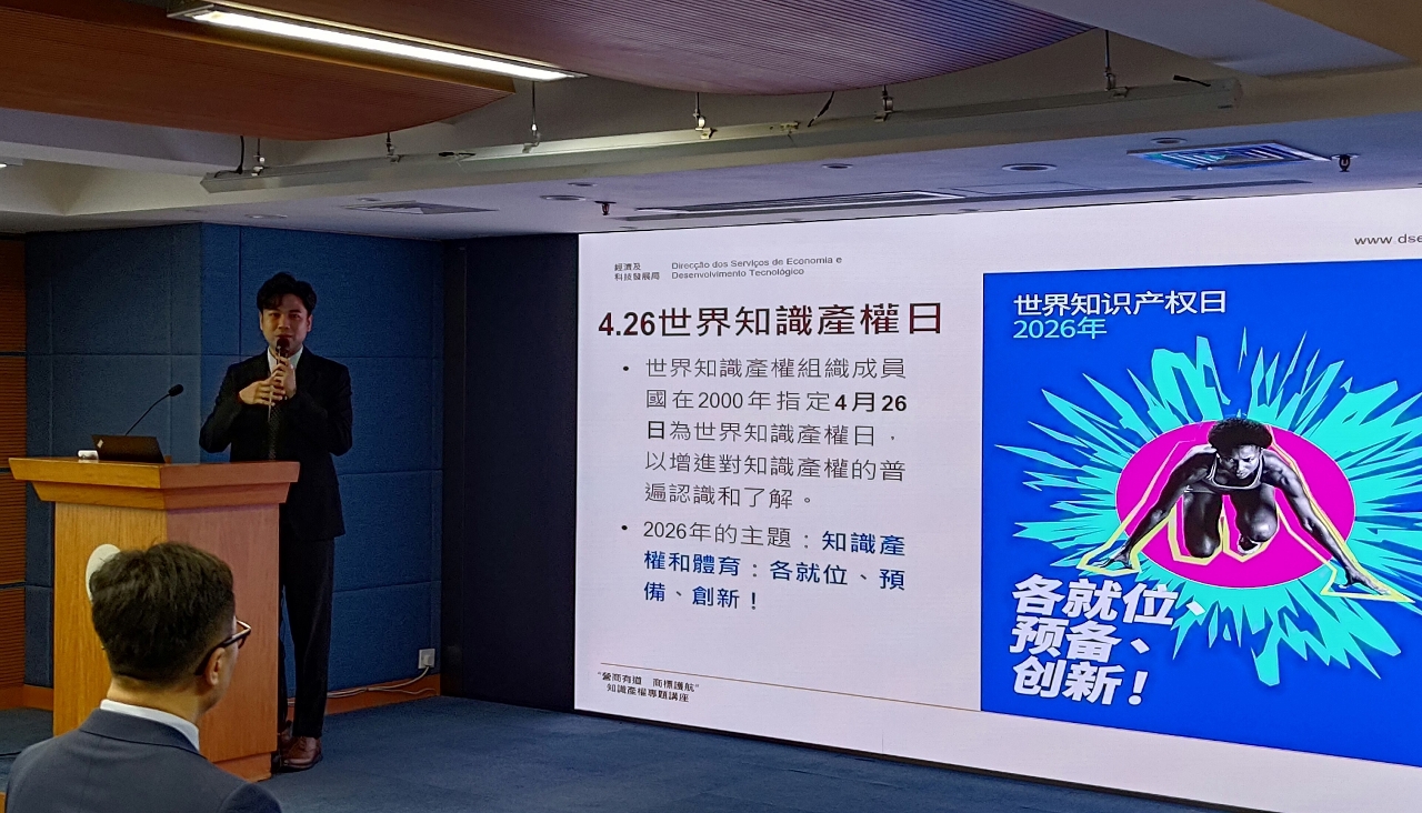 O dia 26 de Abril é designado como o "Dia Mundial da Propriedade Intelectual", sendo o tema deste ano "Propriedade Intelectual e Desporto: Prontos, Preparar, Inovar!". Em resposta a esta data, a Direcção dos Serviços de Economia e Desenvolvimento Tecnológico (DSEDT) realiza uma série de actividades de sensibilização, com o objetivo de, através desta iniciativa, integrar a consciência sobre a proteção da propriedade intelectual em todos os níveis da sociedade, à semelhança do espírito desportivo, e estimular a inovação.