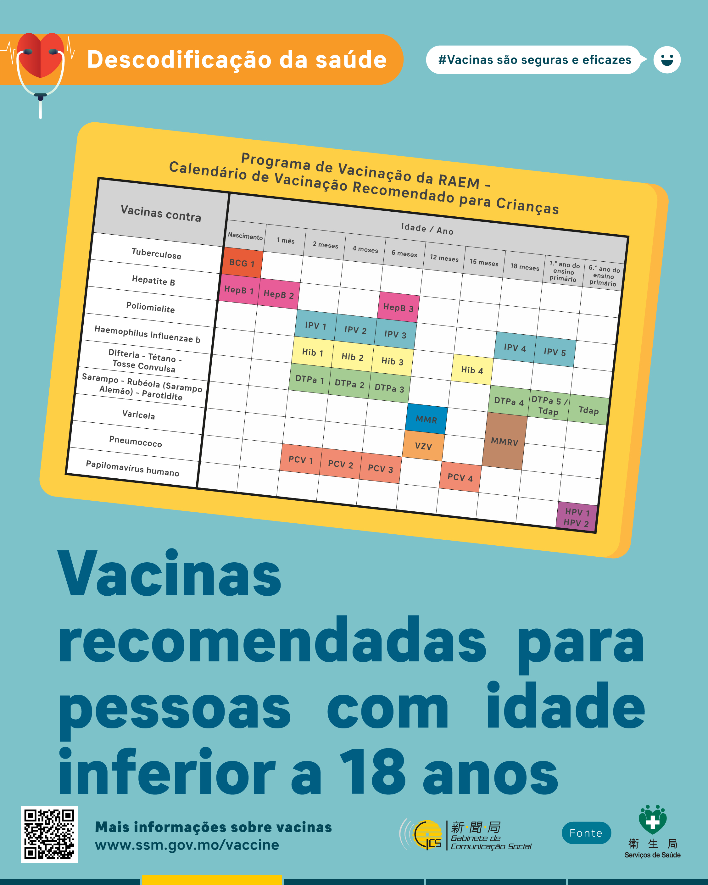 É de salientar que a taxa de vacinação em Macau tem-se mantido num nível elevado. Ao longo dos anos, a taxa de vacinação das crianças com as vacinas convencionais (como as da hepatite B e do sarampo) tem sido superior a 95%, o que não só permitiu construir uma barreira imunitária sólida na comunidade, como também obteve vários reconhecimentos da Organização Mundial da Saúde.