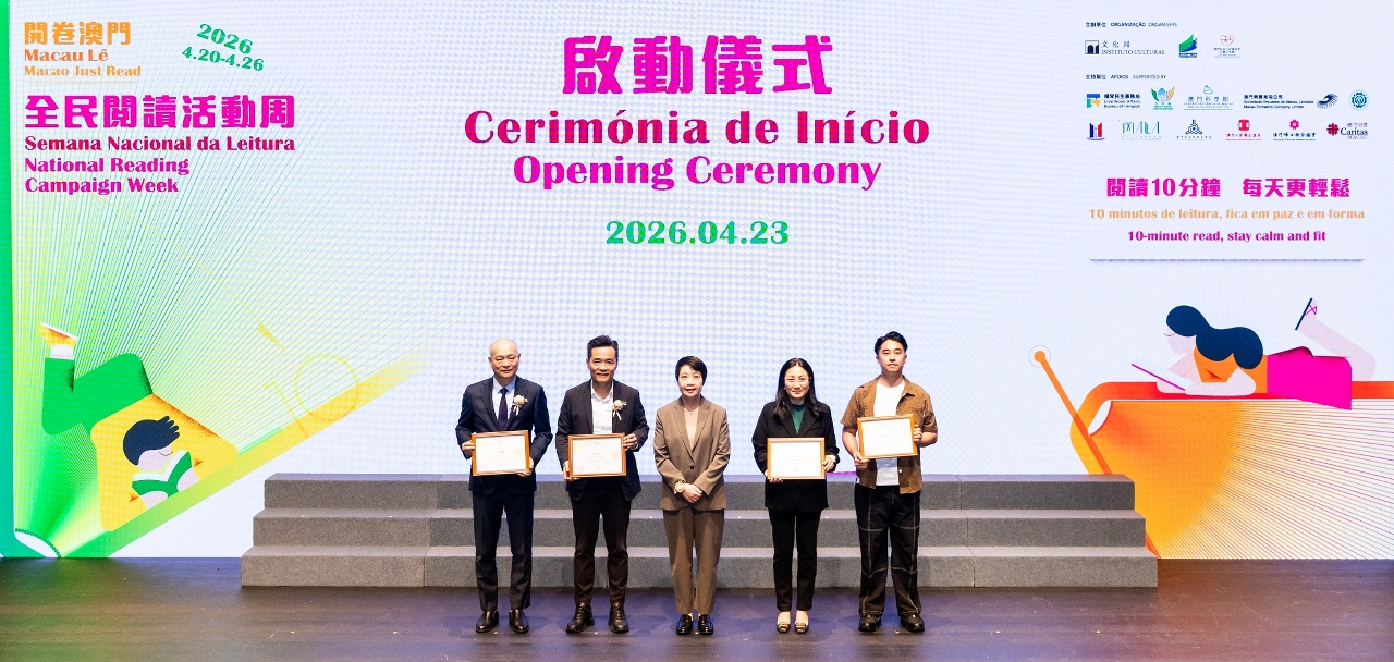 A fim de dar cumprimento ao Regulamento sobre a Promoção da Leitura Nacional – promulgado pelo Conselho do Estado – e celebrar a “Semana Nacional da Leitura”, que ocorre anualmente na quarta semana de Abril, bem como o “Dia Mundial do Livro”, a 23 de Abril, o Instituto Cultural (IC), em conjunto com a Direcção dos Serviços de Educação e de Desenvolvimento da Juventude, o Instituto de Acção Social, e múltiplas organizações civis, realizou hoje (23 de Abril) a cerimónia de início do evento “Macau Lê • Semana Nacional da Leitura 2026” (doravante denominada “Semana Nacional da Leitura”), no Pequeno Auditório do Centro Cultural de Macau (CCM). Sob o lema “10 minutos de leitura, fica em paz e em forma”, o evento contará com uma série das actividades de promoção da leitura em toda a cidade, incentivando os residentes a incorporar a leitura nas suas rotinas diárias, construindo em conjunto uma Macau Cultural com leitura.