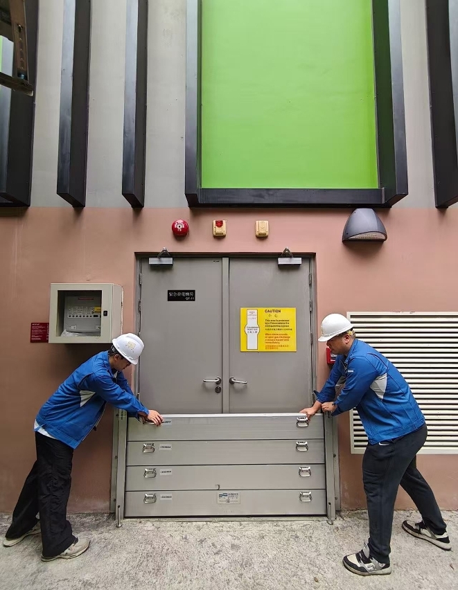 O simulacro encenou os impactos da ocorrência de instabilidade da rede eléctrica pública e de inundações nas zonas mais baixas da cidade, entre outras situações, no funcionamento das infra-estruturas ambientais durante a passagem de um tufão por Macau. Perante estas circunstâncias, a DSPA accionou, imediatamente, o plano de contingência e coordenou o funcionamento da Central de Incineração de Resíduos Sólidos (CIRS) em conjunto com a operadora, incluindo o cenário em que a CIRS cortou, por sua iniciativa, a ligação à rede eléctrica pública, quando esta se encontrava instável, e passou a operar em modo de “ilha isolada”, ou seja, em que a energia eléctrica produzida na CIRS servia apenas para o funcionamento da própria CIRS e não era exportada para a rede eléctrica pública. Por outro lado, na Estação de Tratamento de Águas Residuais do Parque Industrial Transfronteiriço da Ilha Verde e nas Instalações provisórias de tratamento de águas residuais junto à saída de drenagem da box culvert de águas pluviais da Avenida Marginal do Lam Mau, pôs-se em prática a colocação prévia de barreiras contra inundações no posto de transformação e nas salas de equipamentos, para garantir o funcionamento normal das instalações e reduzir os danos resultantes de inundações.