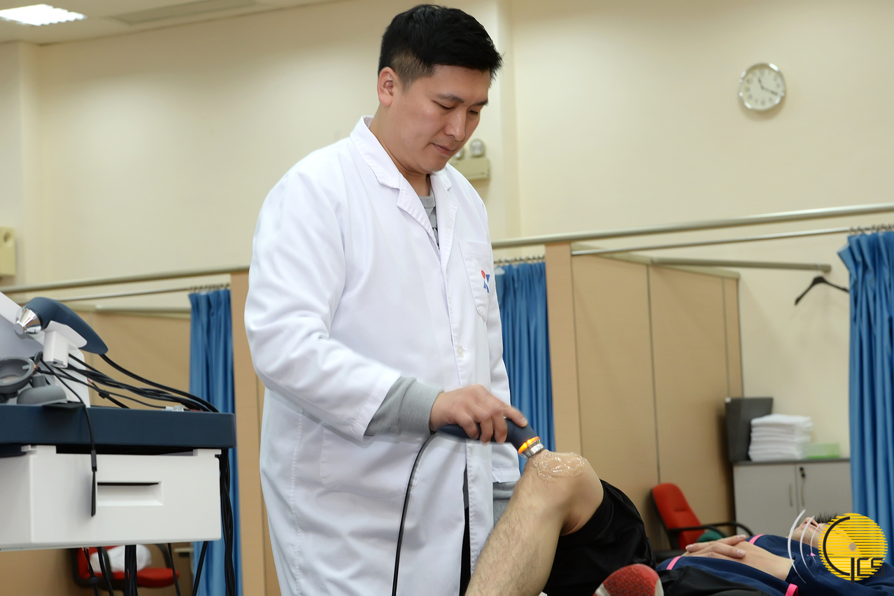 膝盖超声波物理治疗,用以放松膝关节附近的肌肉。