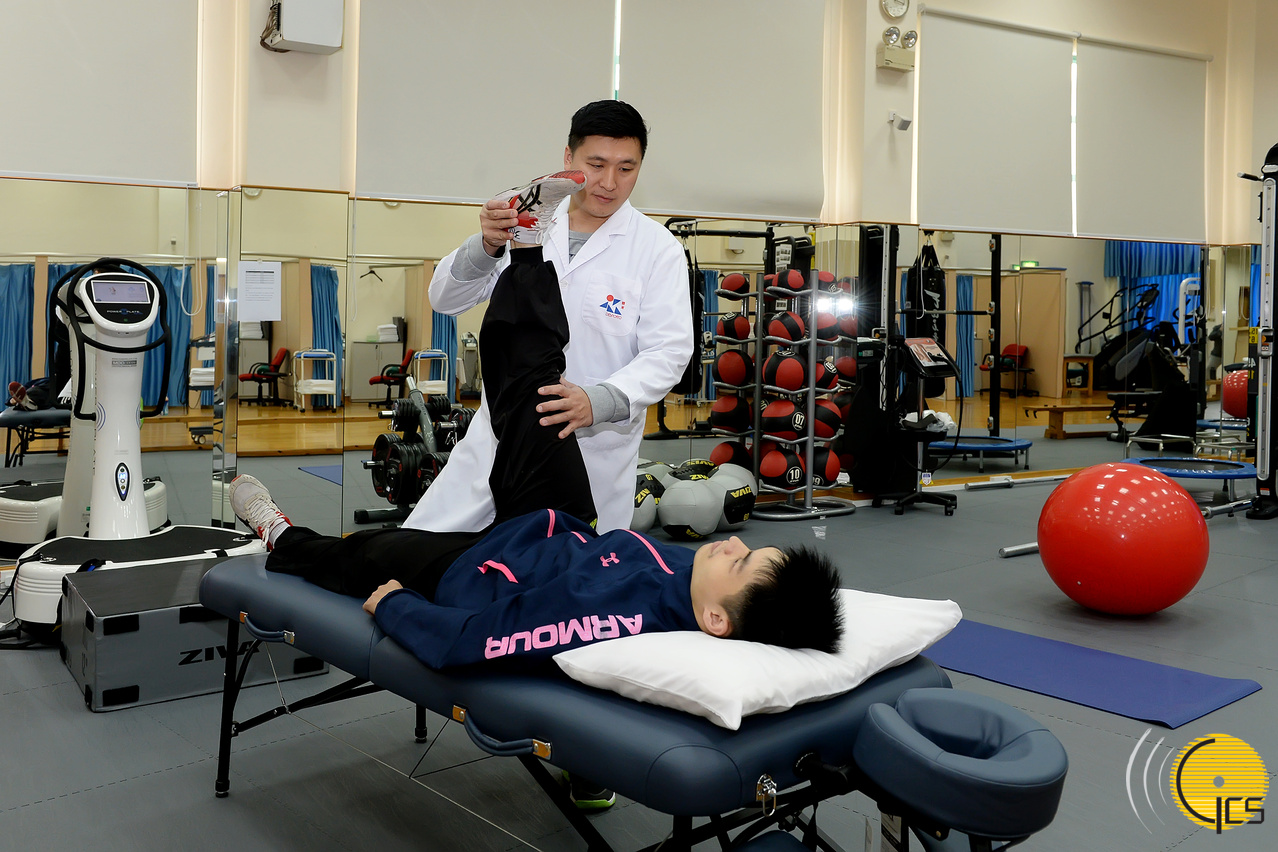 运动医学中心的服务包括运动创伤诊断、物理治疗;中医;运动心理、运动营养等。图为物理治疗师正为运动员进行手法治疗。
