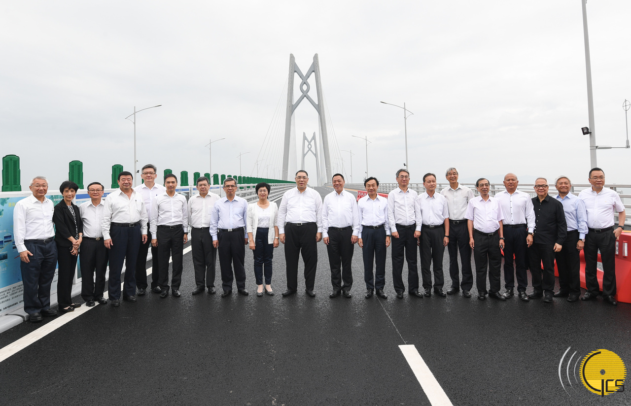 行政长官崔世安与主要官员和检察长、行政会委员等在港珠澳大桥青州桥(中国结)视察及合影。