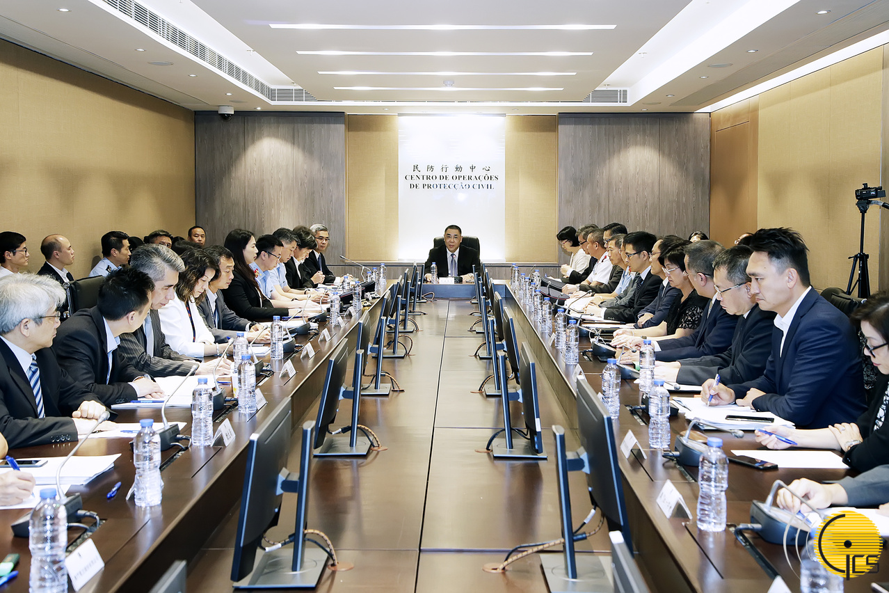 行政长官崔世安在民防行动中心主持台风“山竹”工作总结汇报会议