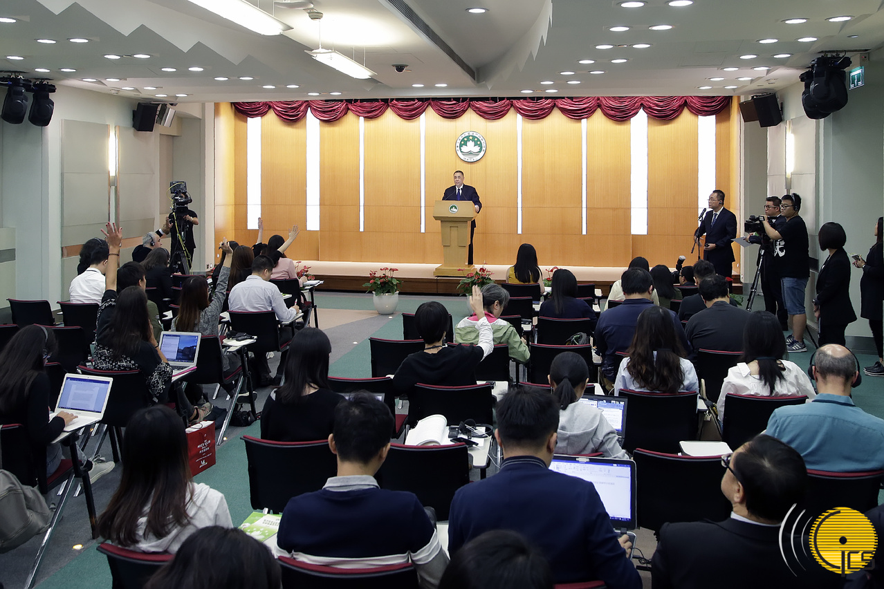 行政长官崔世安发表2019年财政年度施政报告后会见传媒,回答记者提问。