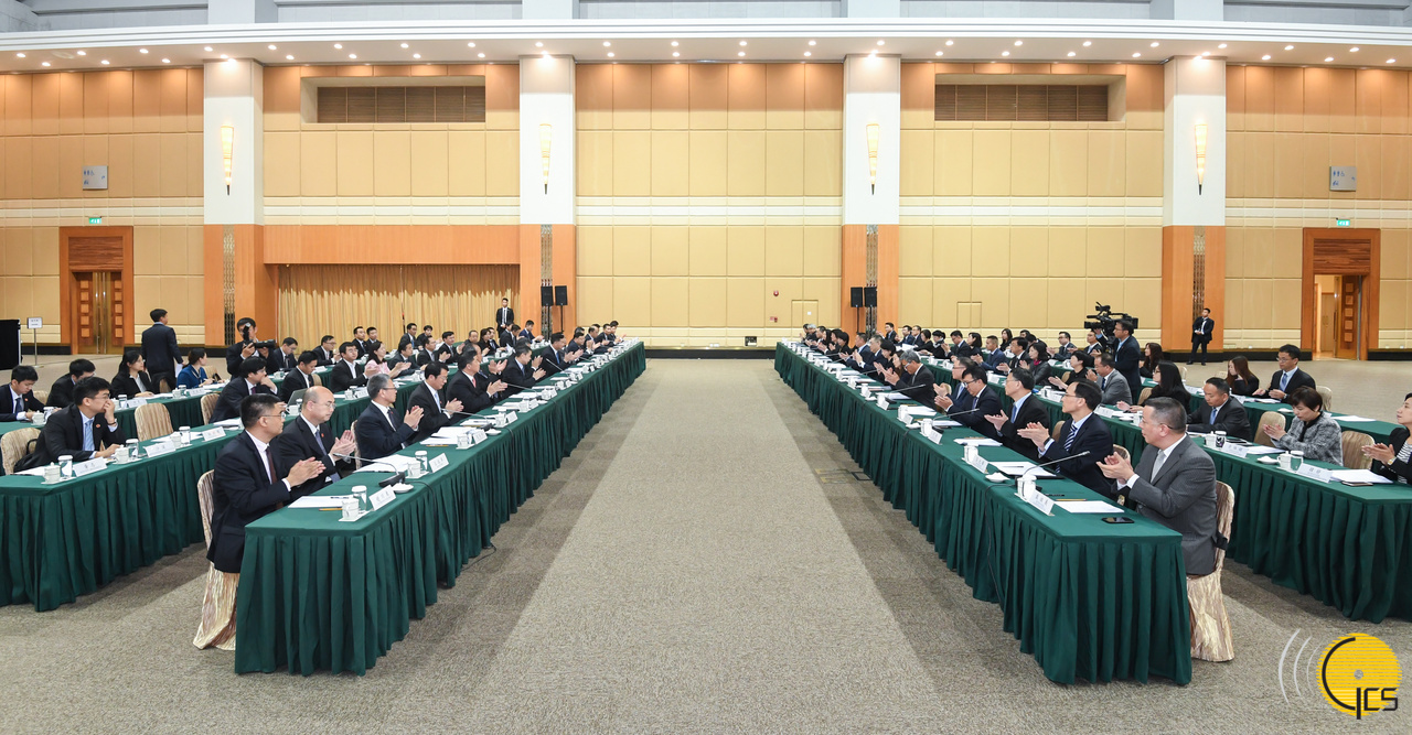 行政长官崔世安、广东省委书记李希、广东省省长马兴瑞与两地政府代表合影。