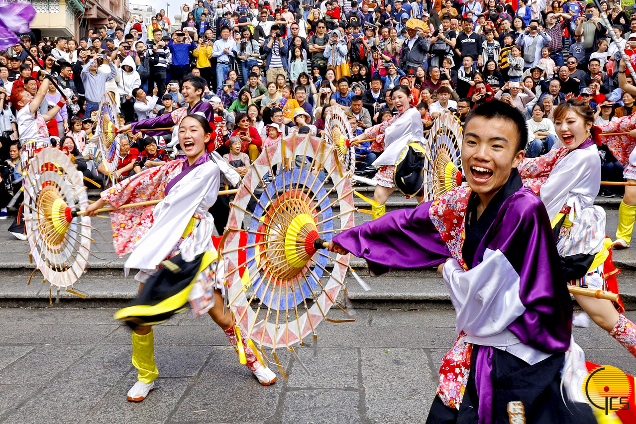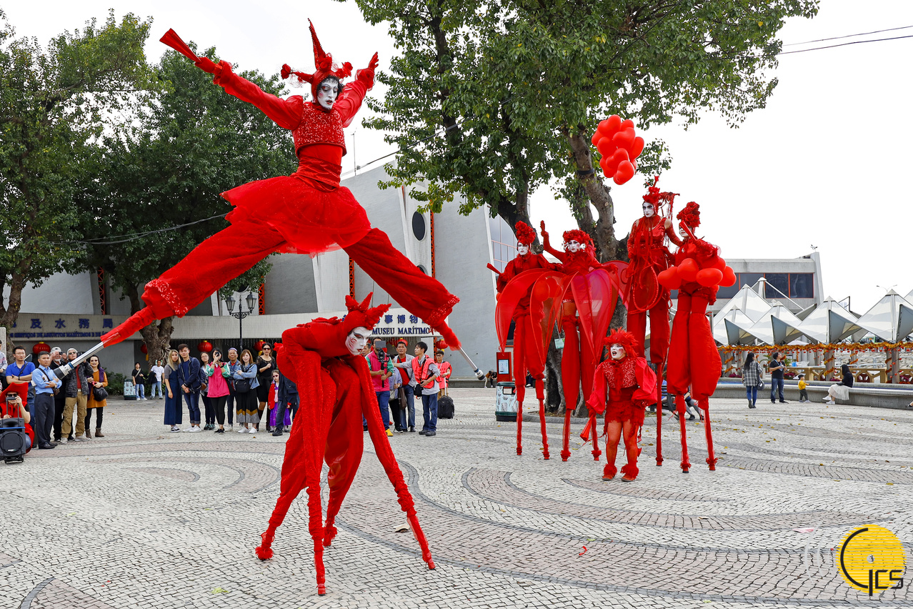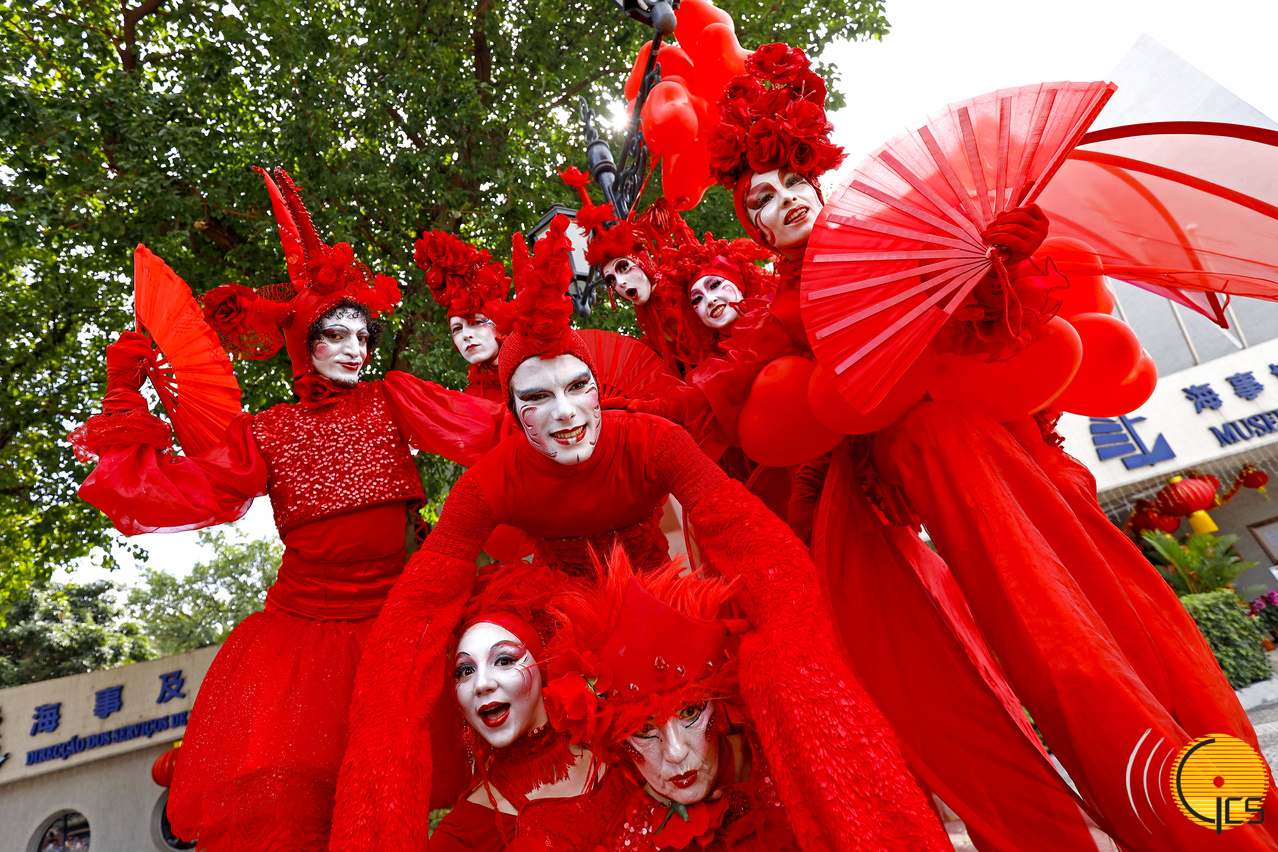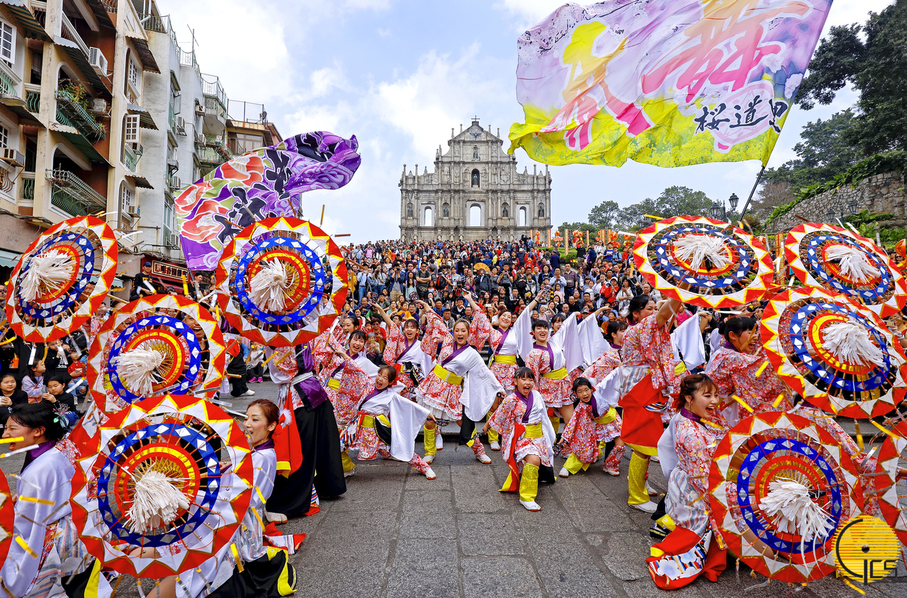 参加农历新年花车汇演的海外表演队于新春期间在澳门多个景点表演,在大三巴牌坊有来自日本表演队的演出。