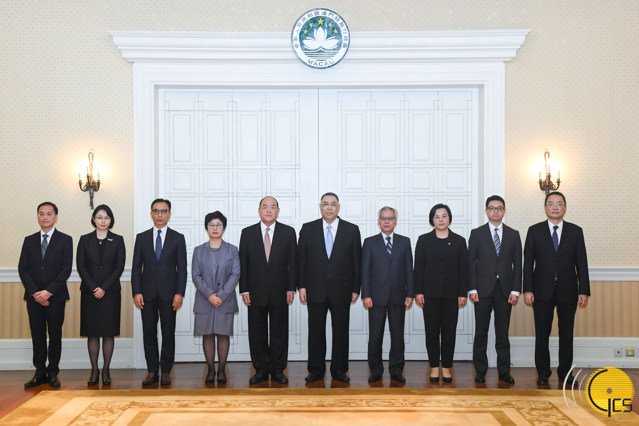 行政长官崔世安与行政长官选举管理委员会主席及委员在就职仪式上合影