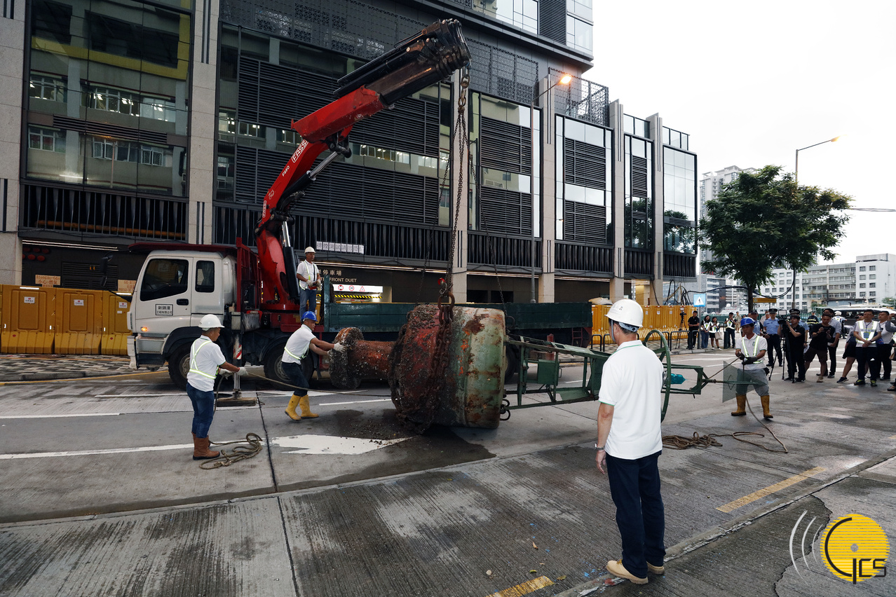 “水晶鱼2019”演习-治安警察局联同澳门建筑机械工程商会展开清障工作,清走冲上岸边的大型浮标。