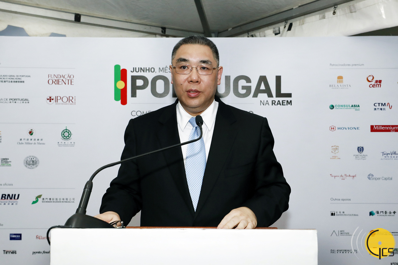 行政长官崔世安在葡国日、葡侨日暨贾梅士日庆祝酒会上致辞。