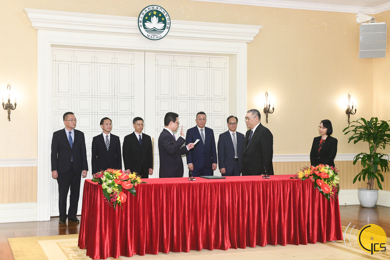 立法会选举管理委员会主席唐晓峰向行政长官崔世安宣誓就职