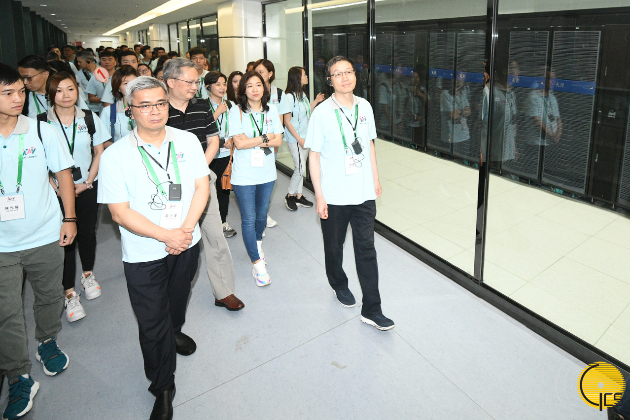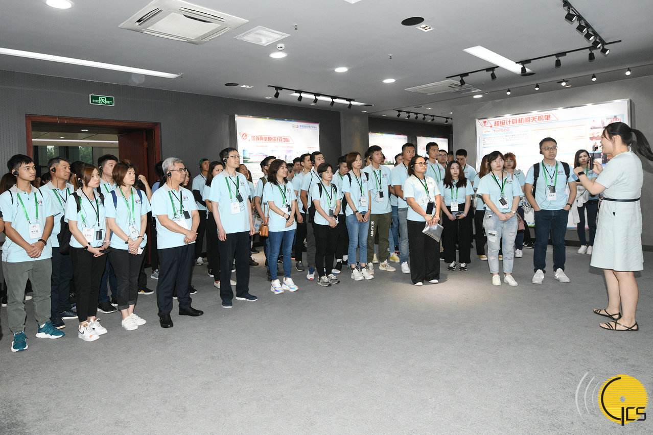保安司司长黄少泽与“新时代同心行”广东省学习参访团到访广州大学城内的国家超级计算广州中心,听取中心代表介绍。
