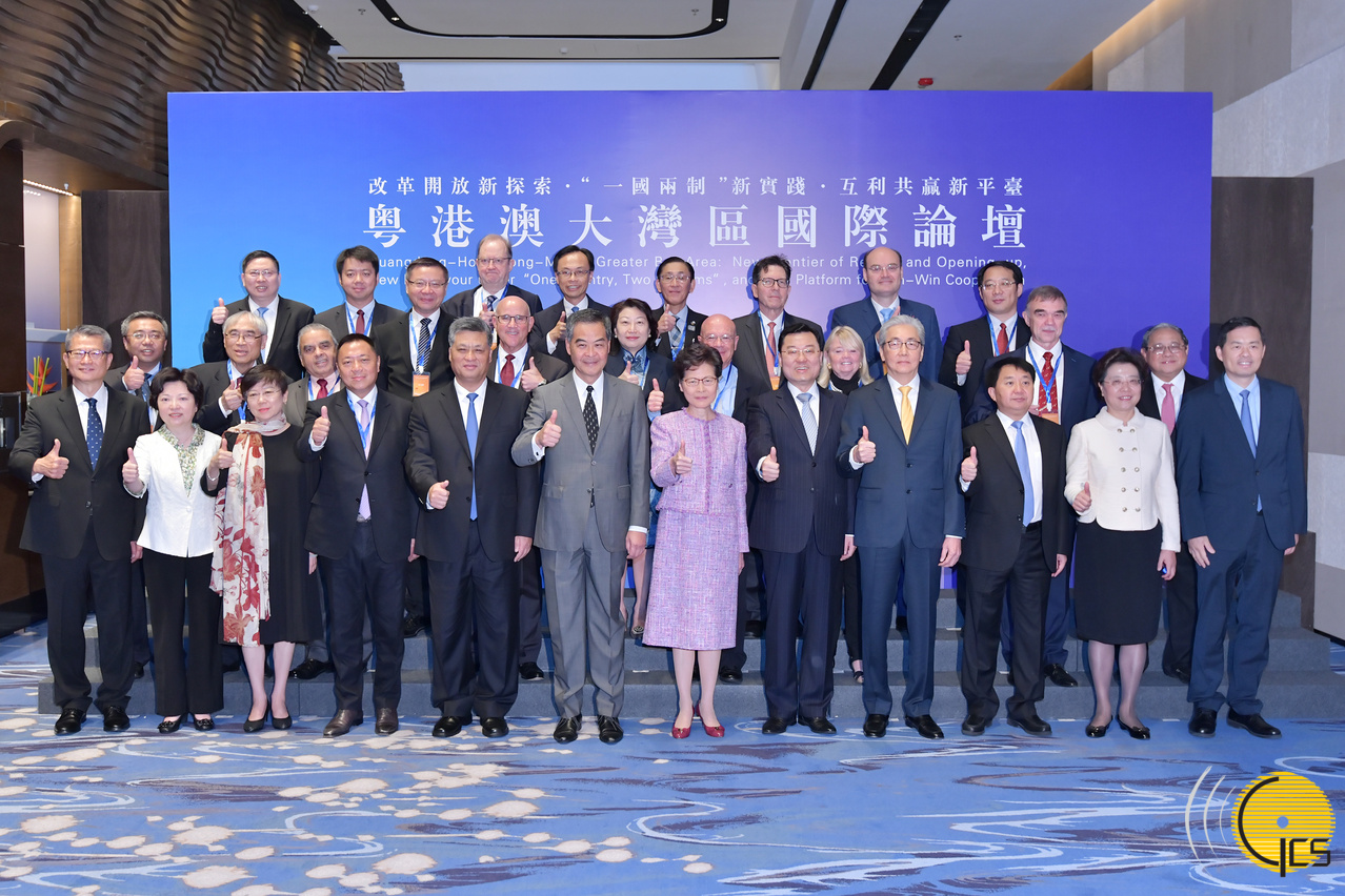 行政长官代表、经济财政司司长梁维特率领澳门特区政府代表团出席在香港举行的“粤港澳大湾区国际论坛”