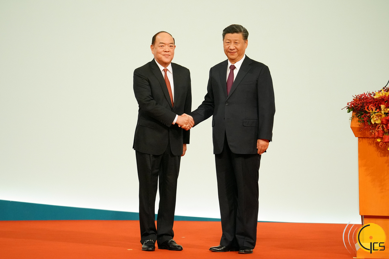 国家主席习近平与刚宣誓就职的第五任行政长官贺一诚亲切握手
