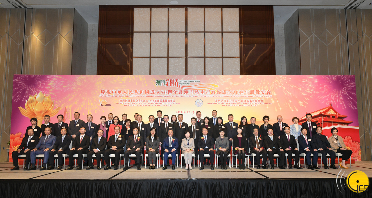经济财政司司长李伟农、社会文化司司长欧阳瑜出席澳门金融界庆祝中华人民共和国成立70周年暨澳门特别行政区成立20周年联欢晚宴