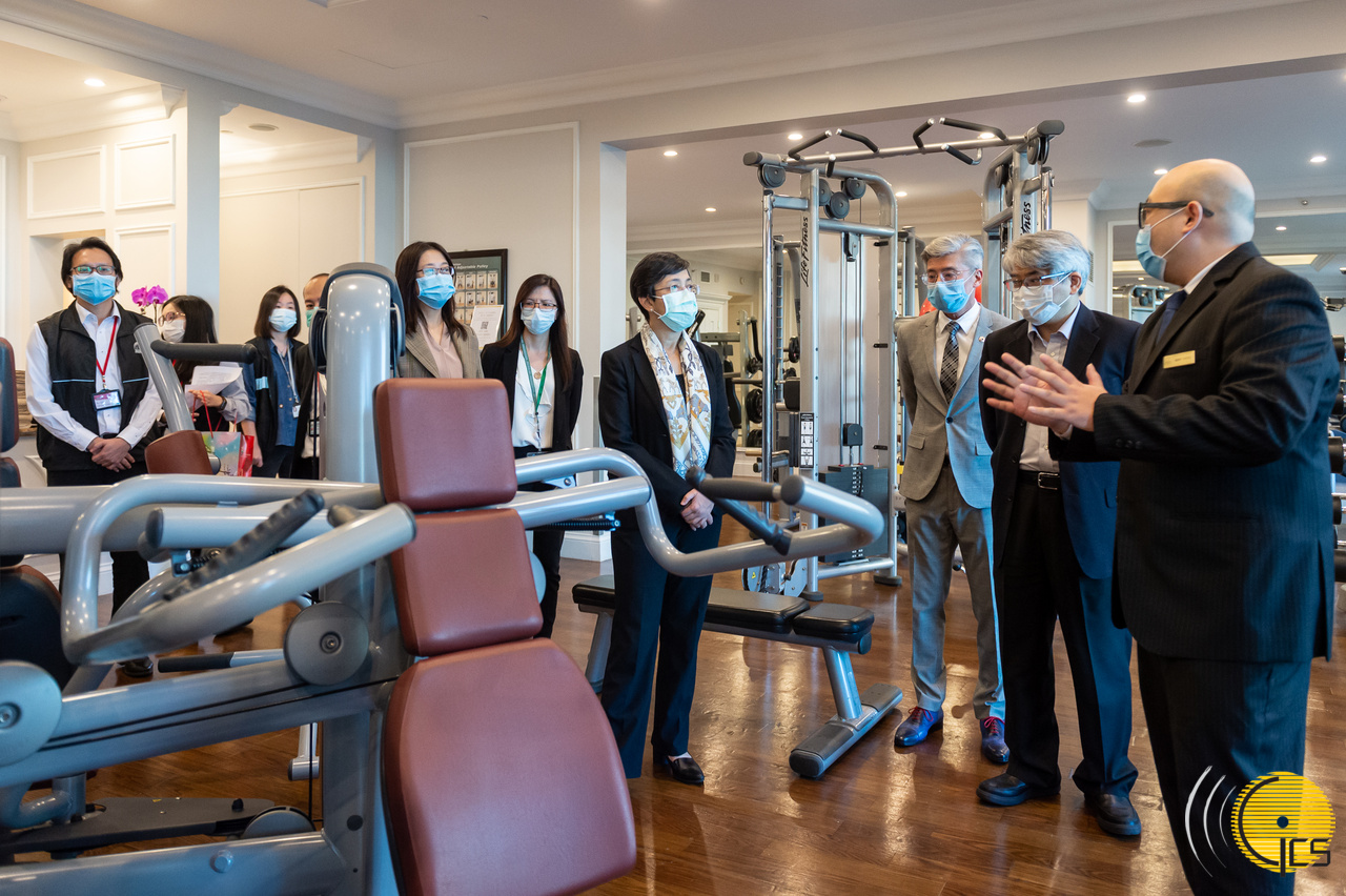 旅游局局长文绮华、卫生局局长李展润等视察将于下周一重开的场所,检查其防疫措施,确保公众安全。