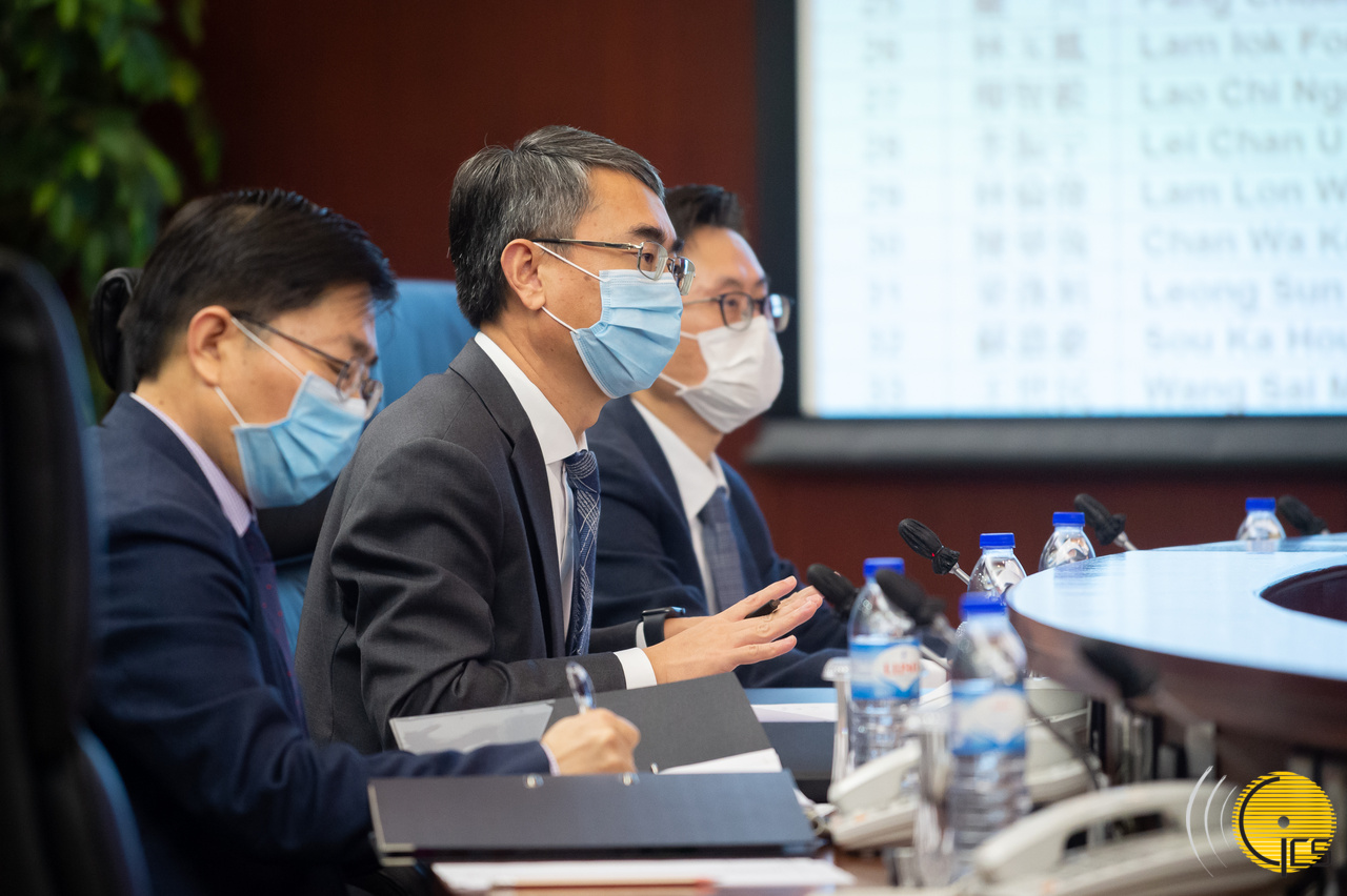 立法会举行全体会议,细则性讨论及表决《订定在横琴口岸澳方口岸区及相关延伸区适用澳门特别行政区法律的基本规范》法案和《电子政务》法案,行政法务司司长张永春列席会议。