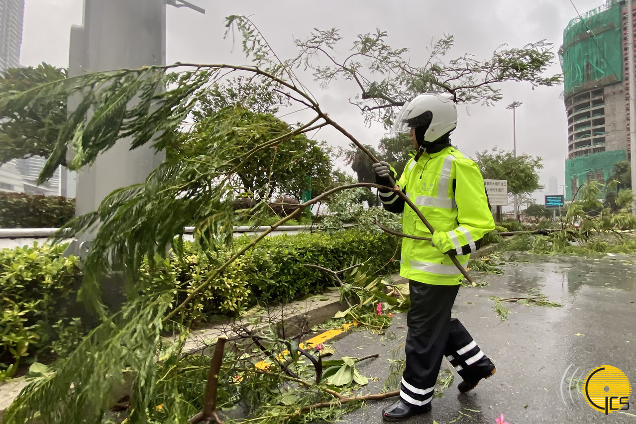 治安警察局澳门警务厅及策划行动厅人员与市民合力清障