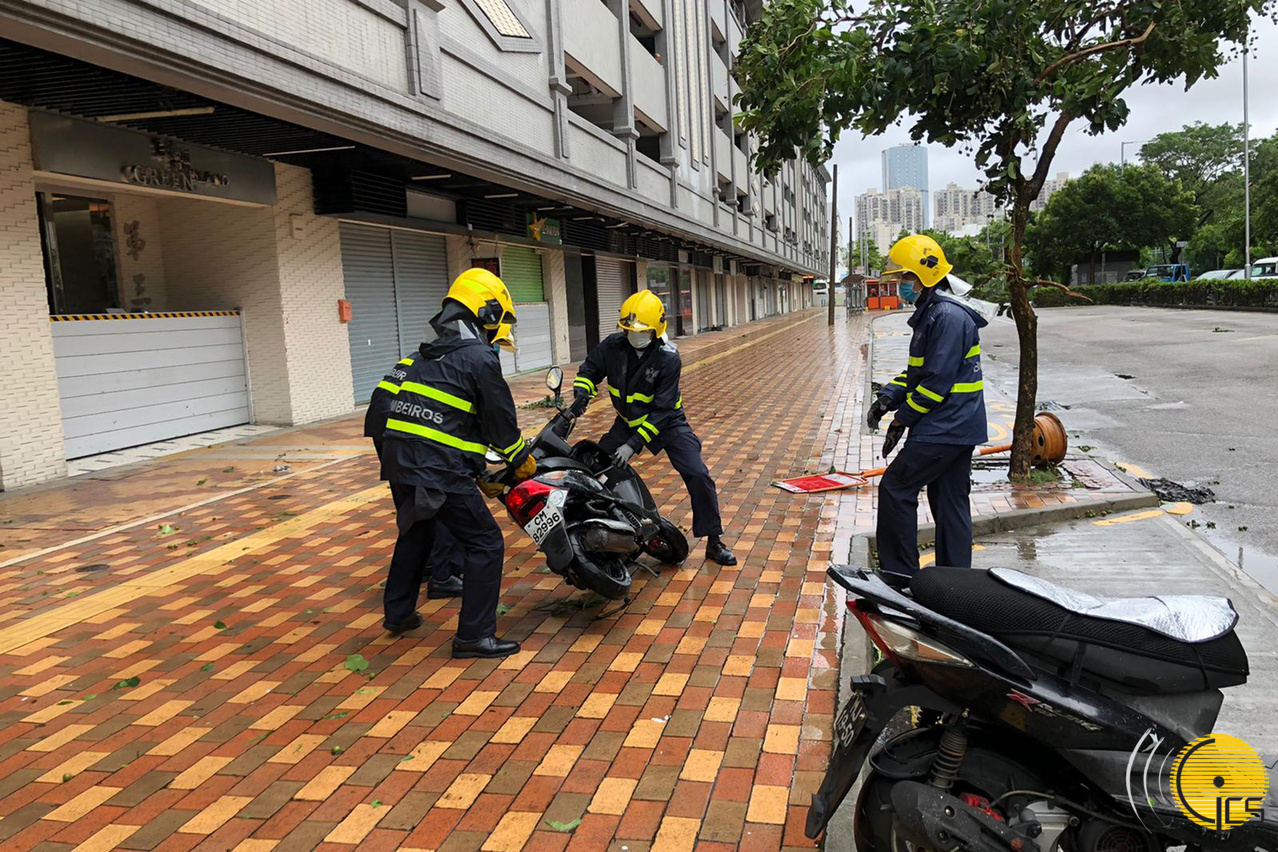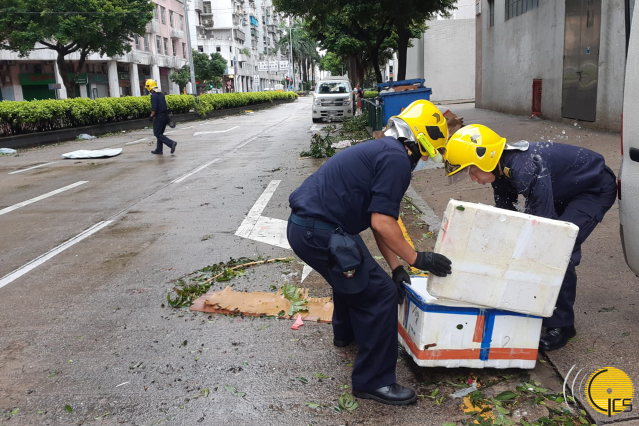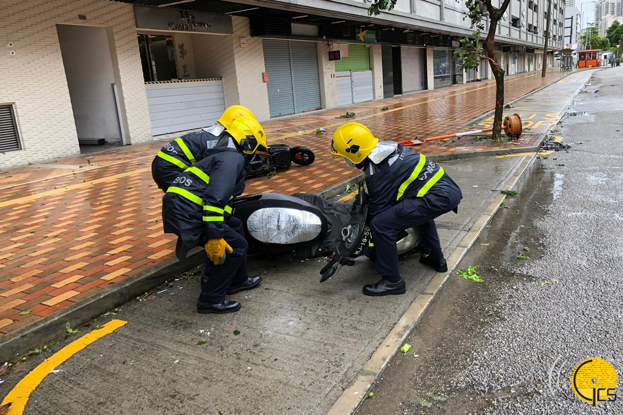 转挂八号风球后,消防局随即到筷子基、青洲一带进行清障,以尽快恢复道路。