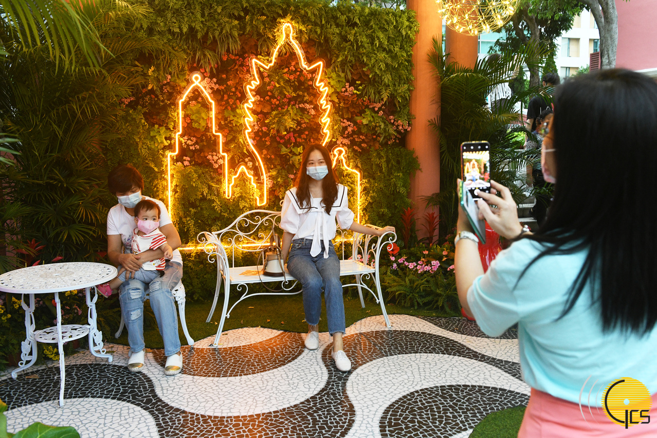政府总部开放日期间,到处可见游人合影留念的欢乐情景。