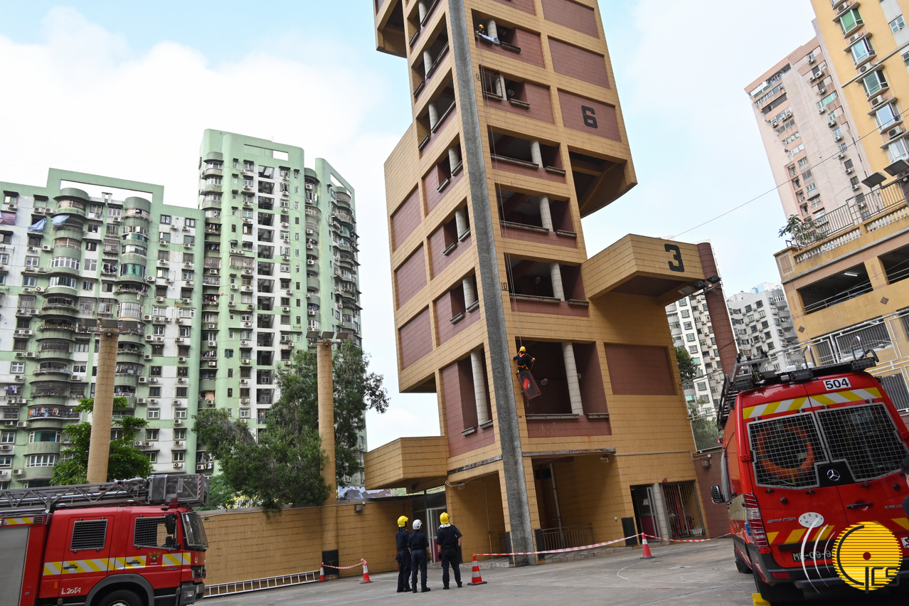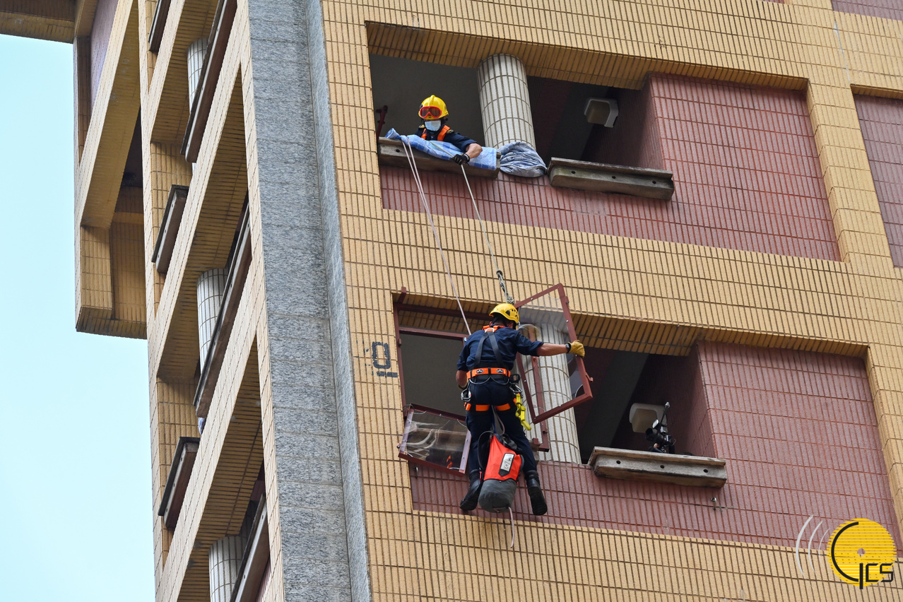 “水晶鱼2021”台风演习-消防局人员拆除有坠落危险的窗户